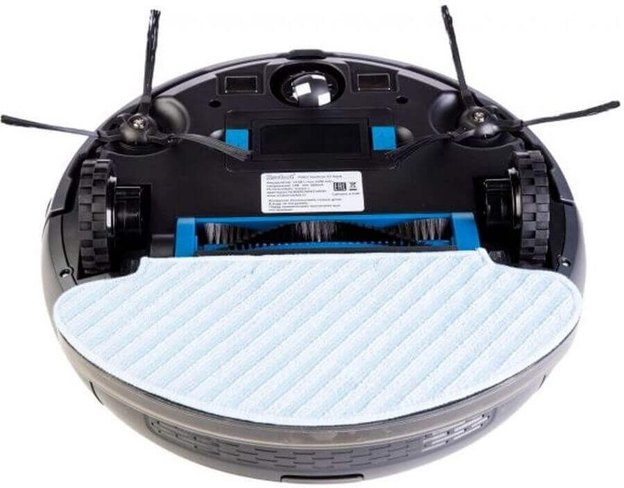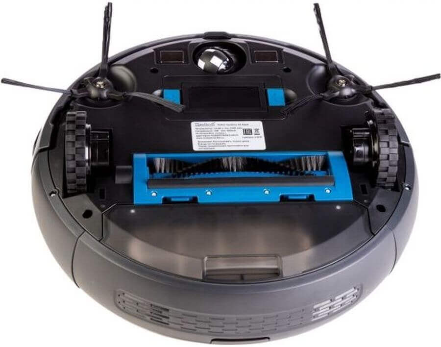 Roboto dulkių siurblio gale tradiciškai yra po du varomuosius ratus kiekvienoje pusėje, mažas priekinis pasukamas ratas, kontaktiniai kilimėliai prijungimui prie įkrovimo bazės ir akumuliatoriaus įkrovimui, akumuliatoriaus skyrius po dangteliu, pora šoninių šepetėlių ir pagrindinis valymo šepetėlis. Apačioje taip pat galima pritvirtinti indą ir mikropluošto šluostę šlapiam valymui.
