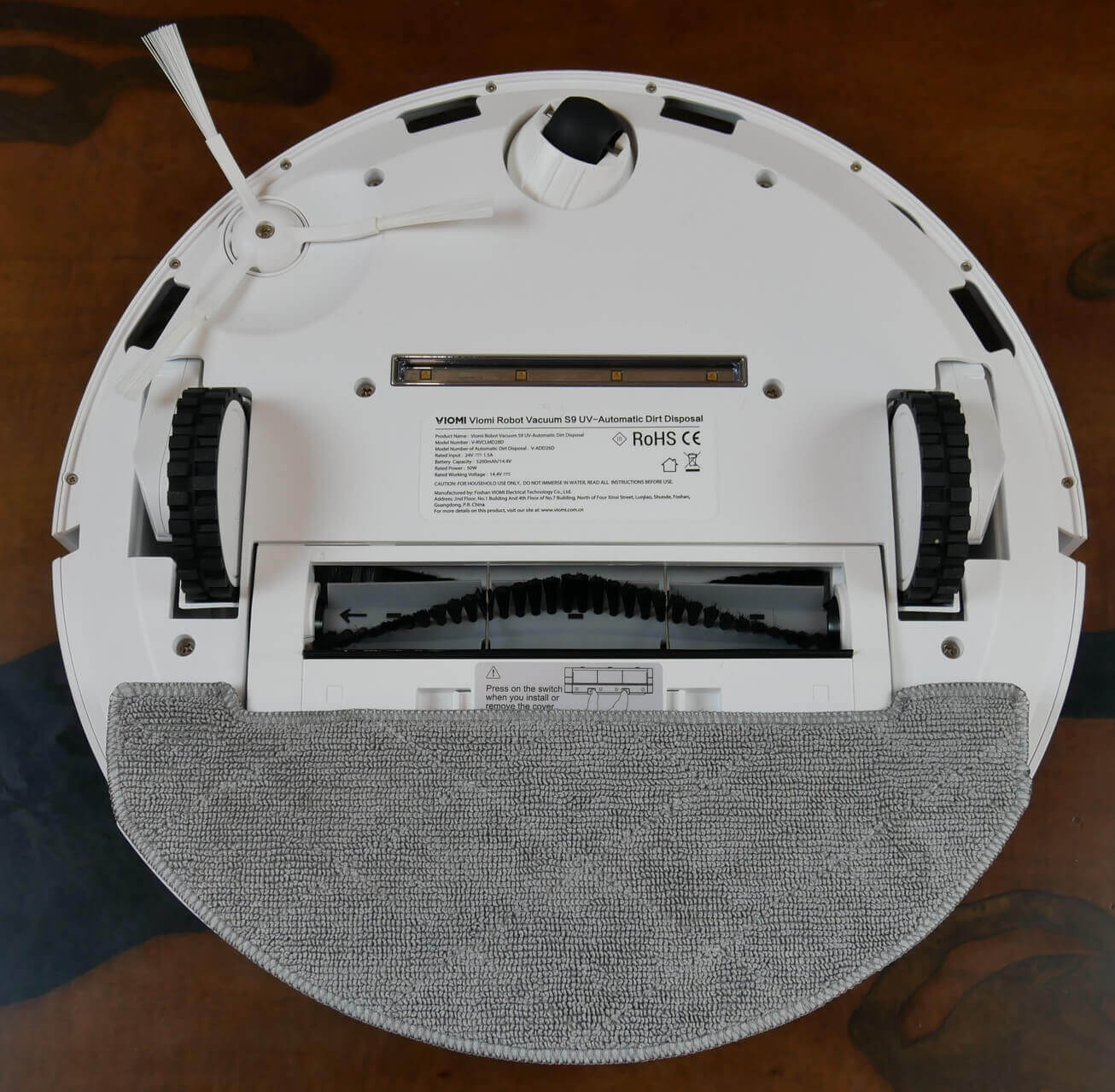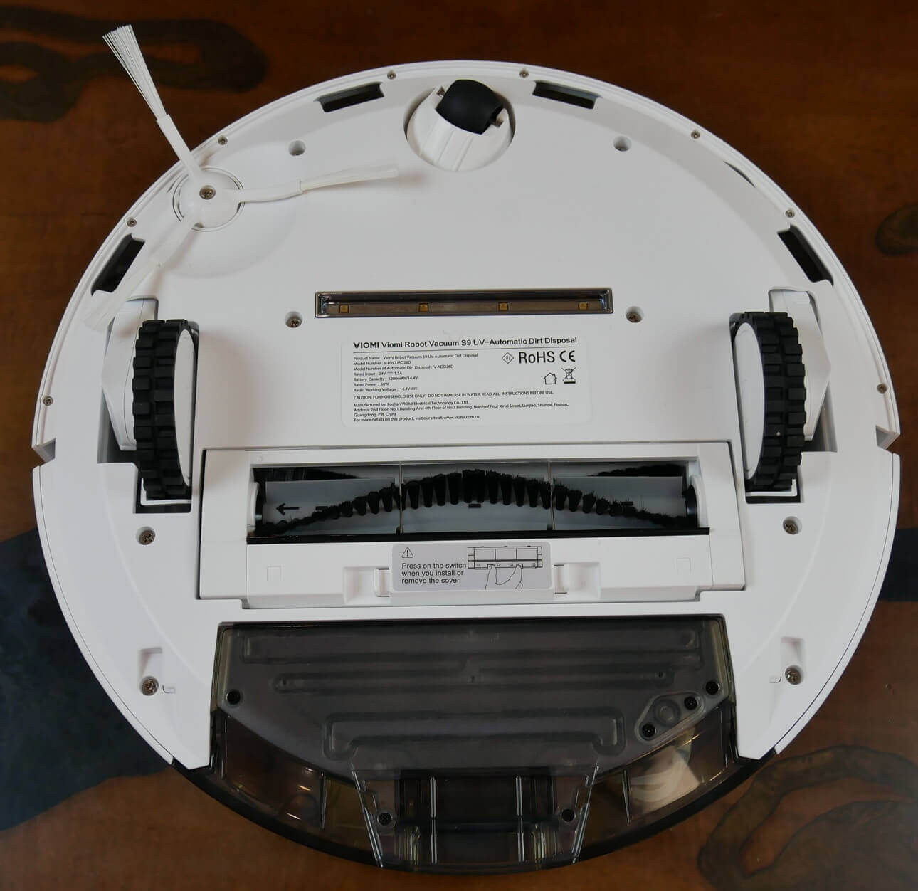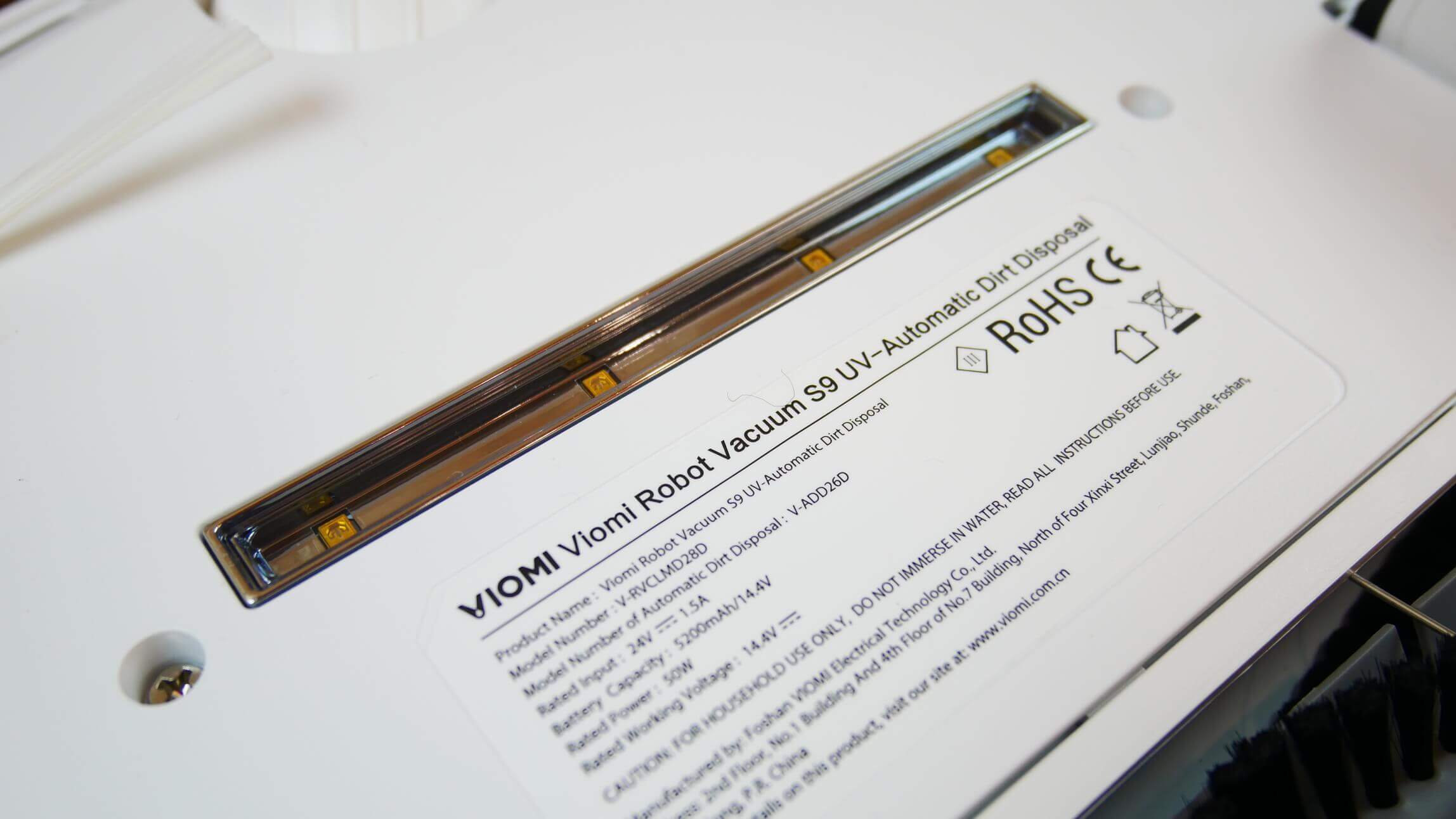 Pažvelkime į „Viomi S9 UV“ apačią. Joje įrengti keturi apsaugos nuo kritimo jutikliai.