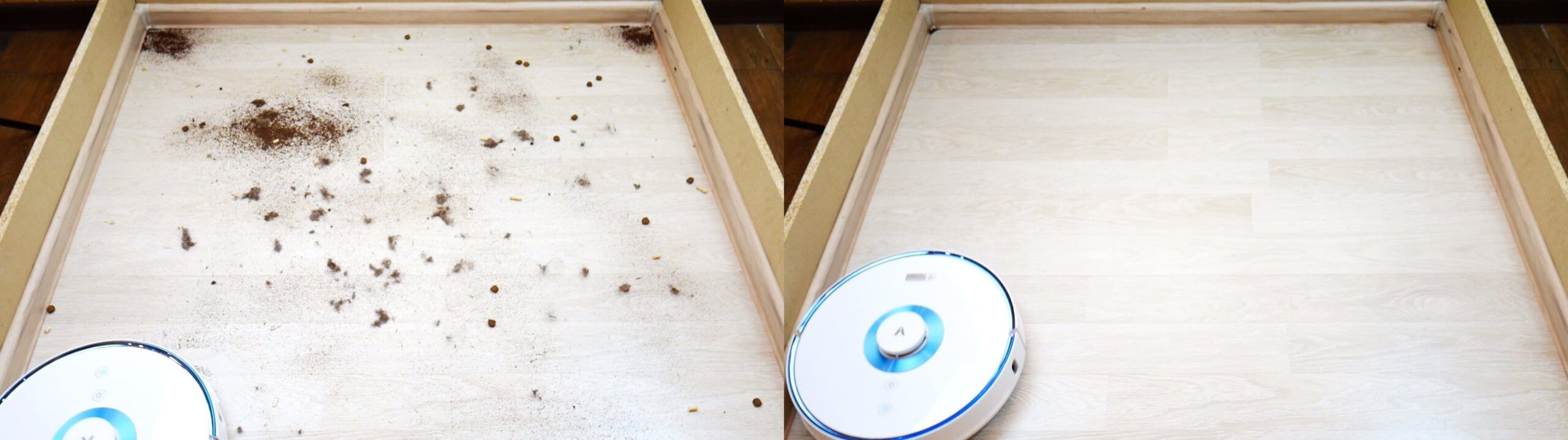 Sauso valymo rezultatai buvo įspūdingi. Teste buvo naudojamas kačių ėdalas ir kraikas, kaip ir pakartotinai prašė abonentai. Robotas gerai atliko cheminį valymą ir netgi išvalė kampus, palyginti su kitais apvaliais robotais. Testas buvo sėkmingas.