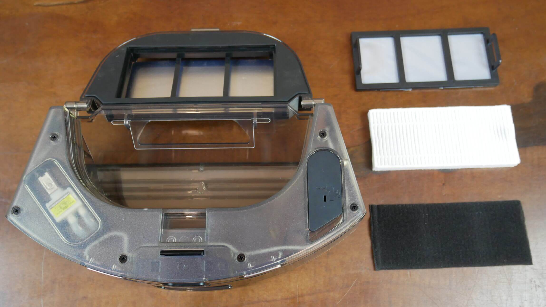 Talpykloje yra sklendė, kad būtų išvengta atsitiktinio išsiliejimo šalinant šiukšles iš roboto. Filtravimo sistemoje naudojamas tinklelis, putplastis ir HEPA filtras.