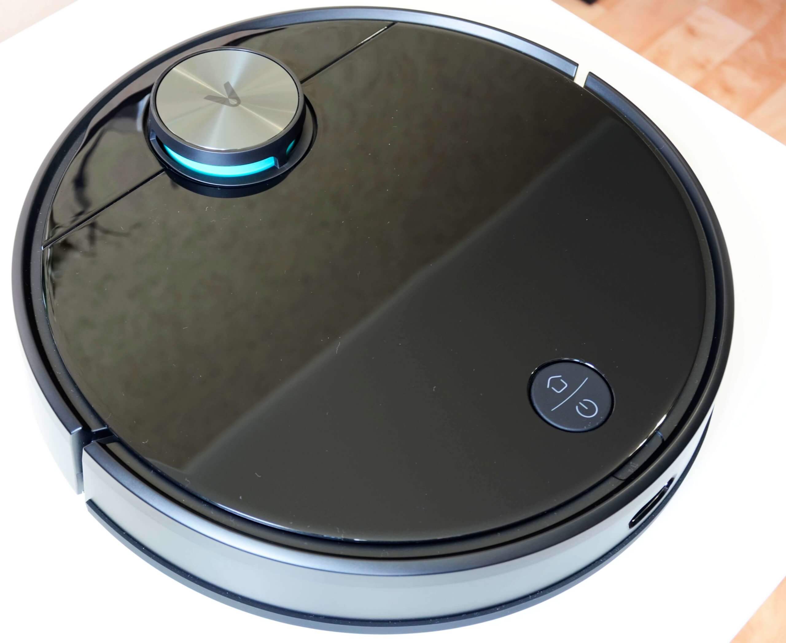 Dabar pažvelkime į patį robotą dulkių siurblį. Korpusas yra juodas ir blizgus. Jis atrodo stilingai, tačiau šio dizaino robotas yra labiau linkęs į purvą ir nešvarumus. Lidaro jutiklis neturi mechaninio mygtuko, kuris neleistų robotui įstrigti, kaip yra naujosios „Roborock“ robotų šeimos atveju.