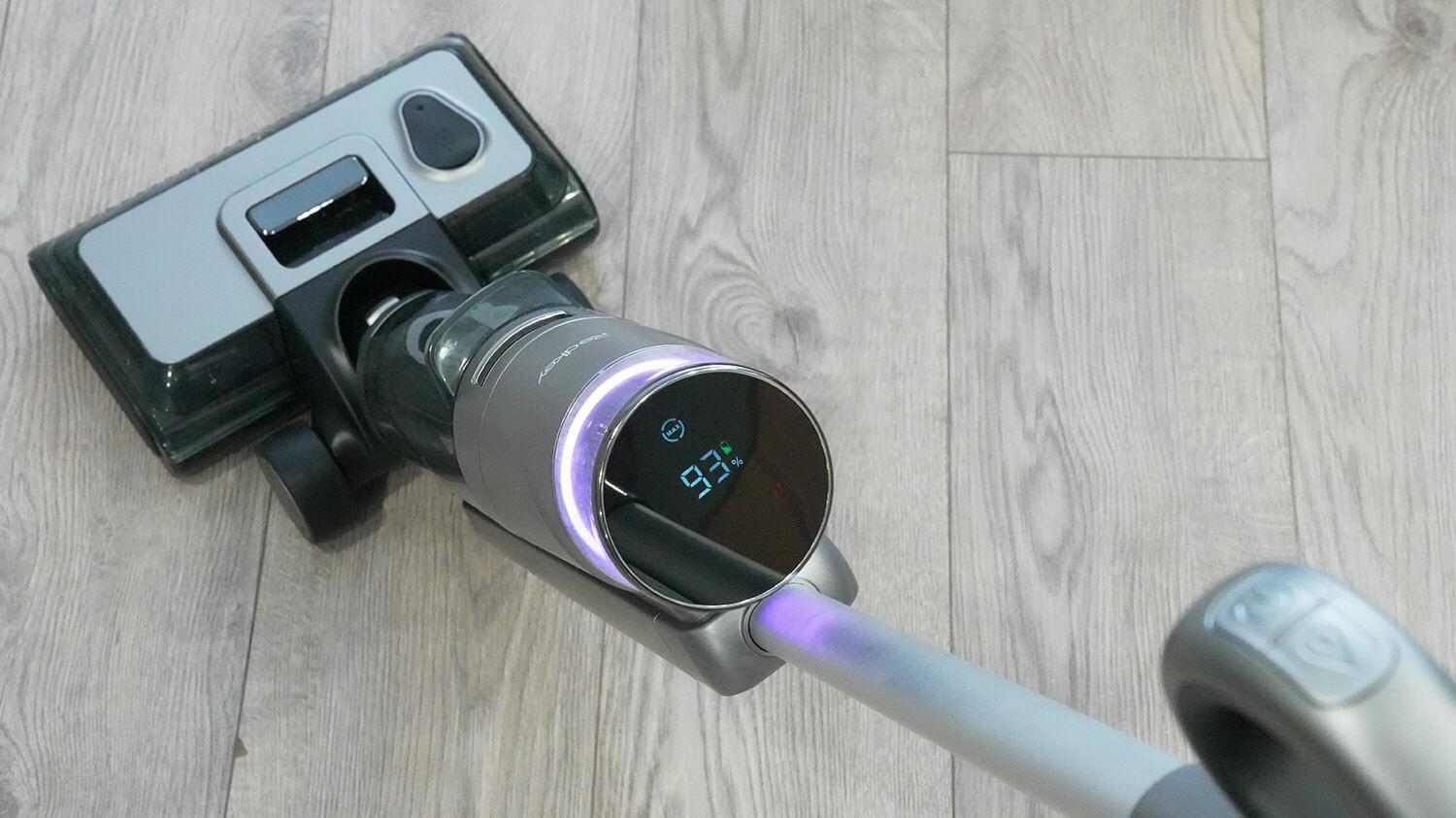 Jo privalumas – konkurencingesnė kaina, palyginti su panašiais modeliais. Tai neturi neigiamos įtakos grindų valymo našumui – jo siurbimo galia yra net didesnė nei kai kurių kitų reitingo modelių. Jo veikimo laikas taip pat prilygsta konkurentams brangesniame segmente. Taigi, jei jums nereikia 180 laipsnių pakreipimo kampo, galite drąsiai rinktis šį modelį nepermokėdami. Volelis, esantis korpuso krašte, efektyviai pašalina nešvarumus ir valo grindis su minimalia akląja zona ties grindjuoste – vos 3 mm, palyginti su 5–8 mm panašiai išdėstytiems voleliams. Volelis taip pat pasižymi greito džiūvimo ir savaiminio išsivalymo pagrindu. Dulkių siurblys turi išimamą bateriją, o tai yra aiškus pranašumas, palyginti su konkurentais. Jis taip pat turi patogų naudoti ekraną, kuriame rodoma visa informacija. Pridedami atsarginiai priedai ir eksploatacinės medžiagos. Dėl grindų valymo našumo nusiskundimų nėra – jis gerai valo, nepalikdamas dryžių ar žymių. Todėl, jei jūsų biudžetas ribotas, šis plovimo dulkių siurblys bus ne mažiau įdomus pirkinys.