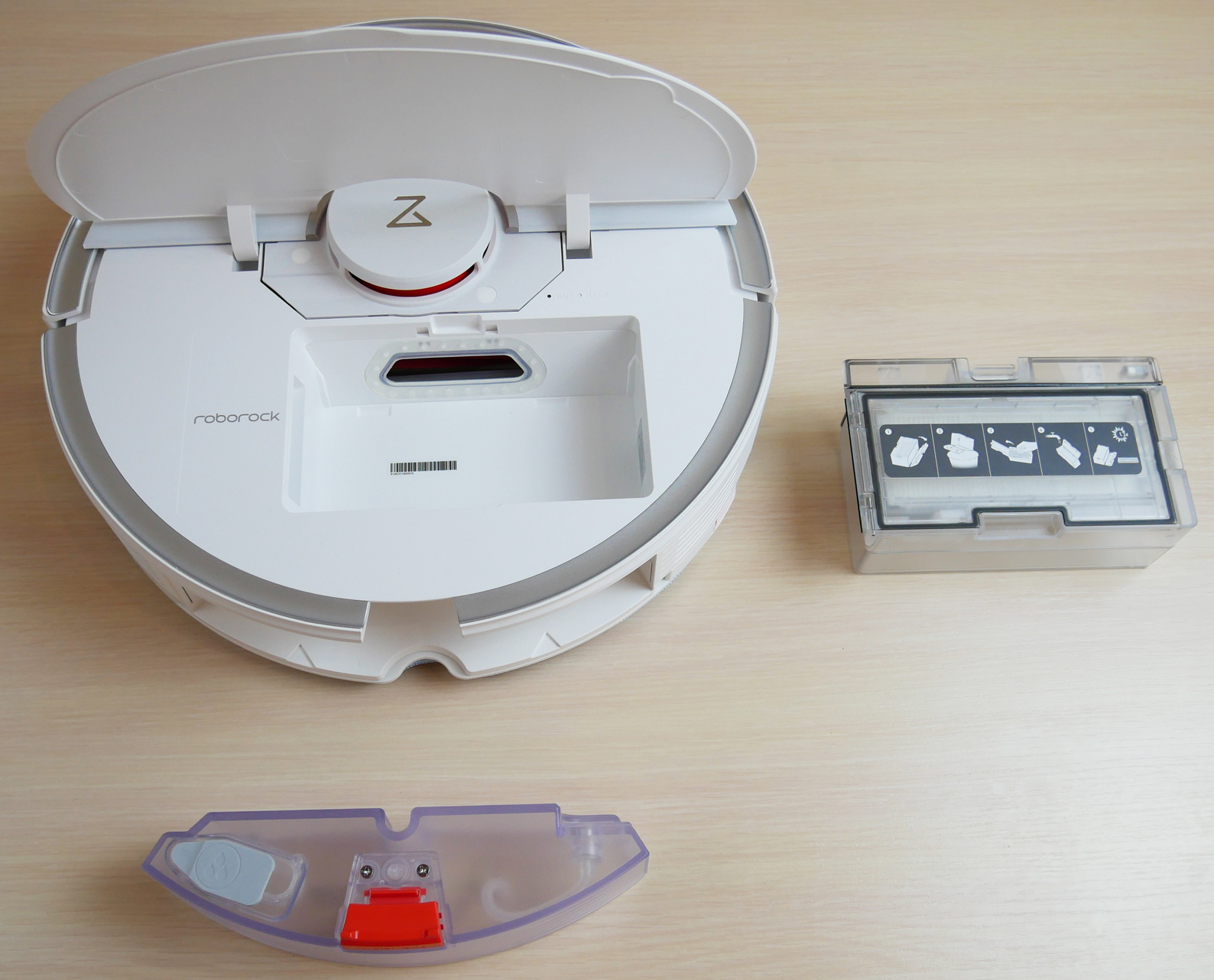 Su vandens baku yra kitaip. Geriausia jį sumontuoti šalia dulkių surinktuvo. Tokiu būdu robotas dulkių siurblys gali siurbti ir valyti grindis vienu metu. Be to, jis turės ir talpią vandens baką, ir dulkių surinktuvą.