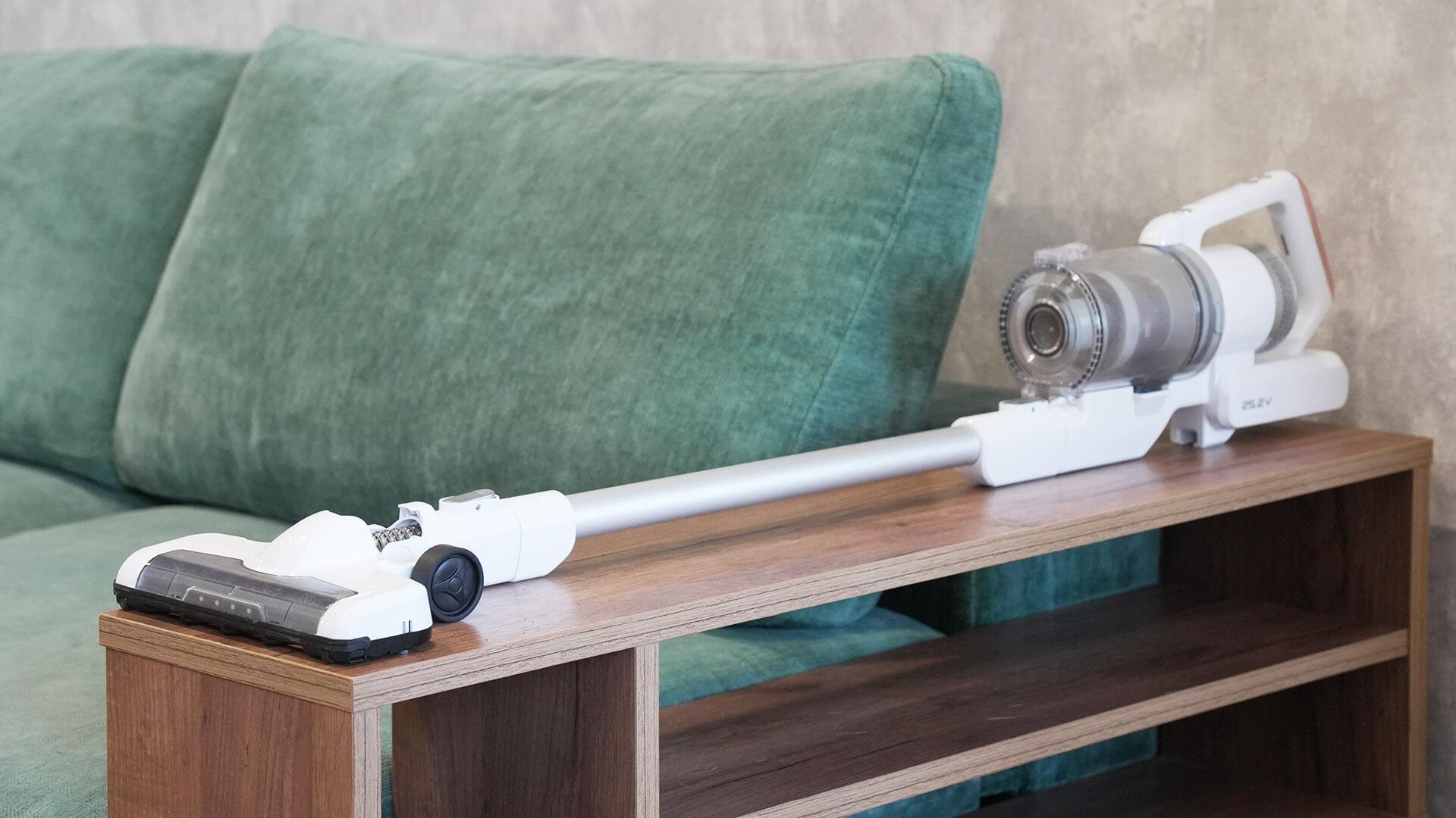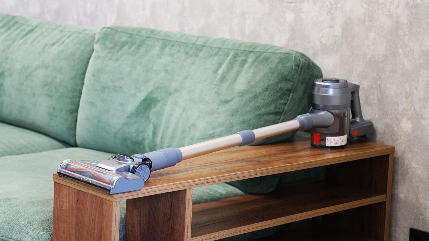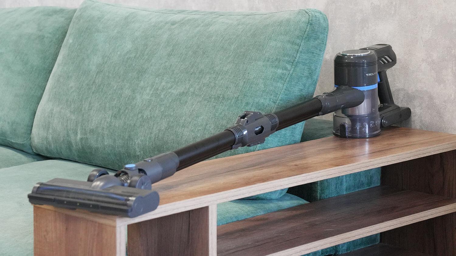 Įrenginys taip pat išsiskiria gerai suprojektuota konstrukcija, kurią sudaro ne tik čiužinio antgalis su turbo šepečiu (retenybė šiame kainų segmente), bet ir šlapio valymo antgalis. Pagrindinės savybės: išimama baterija, išimama dulkių talpykla, ekranas, valymo zonos apšvietimas, sulankstomas prailginimo vamzdis ir tvirta filtravimo sistema. Svarbu tai, kad pagrindinio antgalio ritininis dizainas dėl šerelių įdėklų tinka tiek kietoms grindims, tiek kilimams valyti.