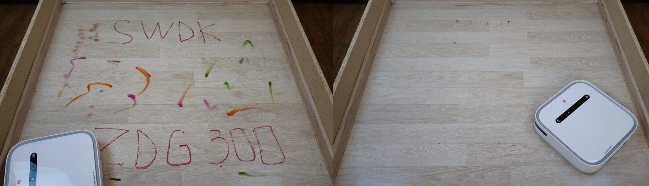 Taip pat apžvelgėme šį robotą ir pademonstravome aukštos kokybės valymo našumą bei lengvą navigaciją. Jo valymo modulis labai panašus į „Hobot Legee“ sprendimą, tačiau vietoj purkštukų vanduo tiekiamas per keturis padėklus, juos prisotinant. Be to, padėklai šluoja šiek tiek mažesniu dažniu – 600–800 judesių per minutę. Vibracijos amplitudė taip pat mažesnė.