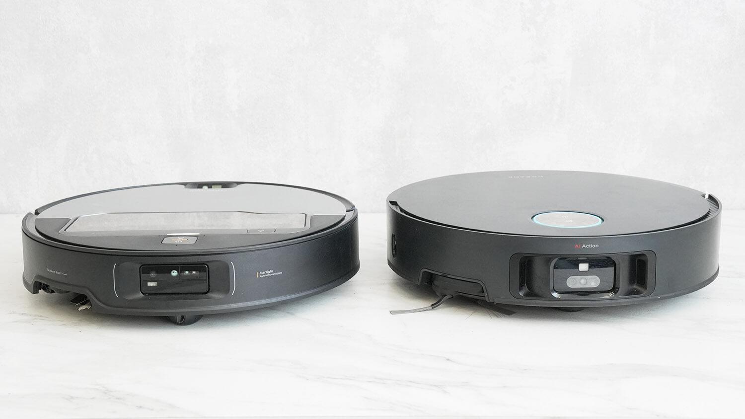 Robotai turi skirtingas navigacijos sistemas, ir tai turi įtakos jų kūnų aukščiui. „Dreame X50 Ultra Complete“ naudoja tradicinę lidaro navigaciją, kuri telpa po baldais, kurių aukštis siekia iki 90 mm, nes pats robotas su nuleistu lidaru yra 89 mm aukščio. „Roborock Saros Z70“ naudoja kameros pagrindu veikiančią navigaciją ir nejuda nei į vidų, nei iš išorės. Tačiau plonesnis, 80 mm korpusas leidžia jam tilpti po baldais, kurių storis siekia net 80 mm.