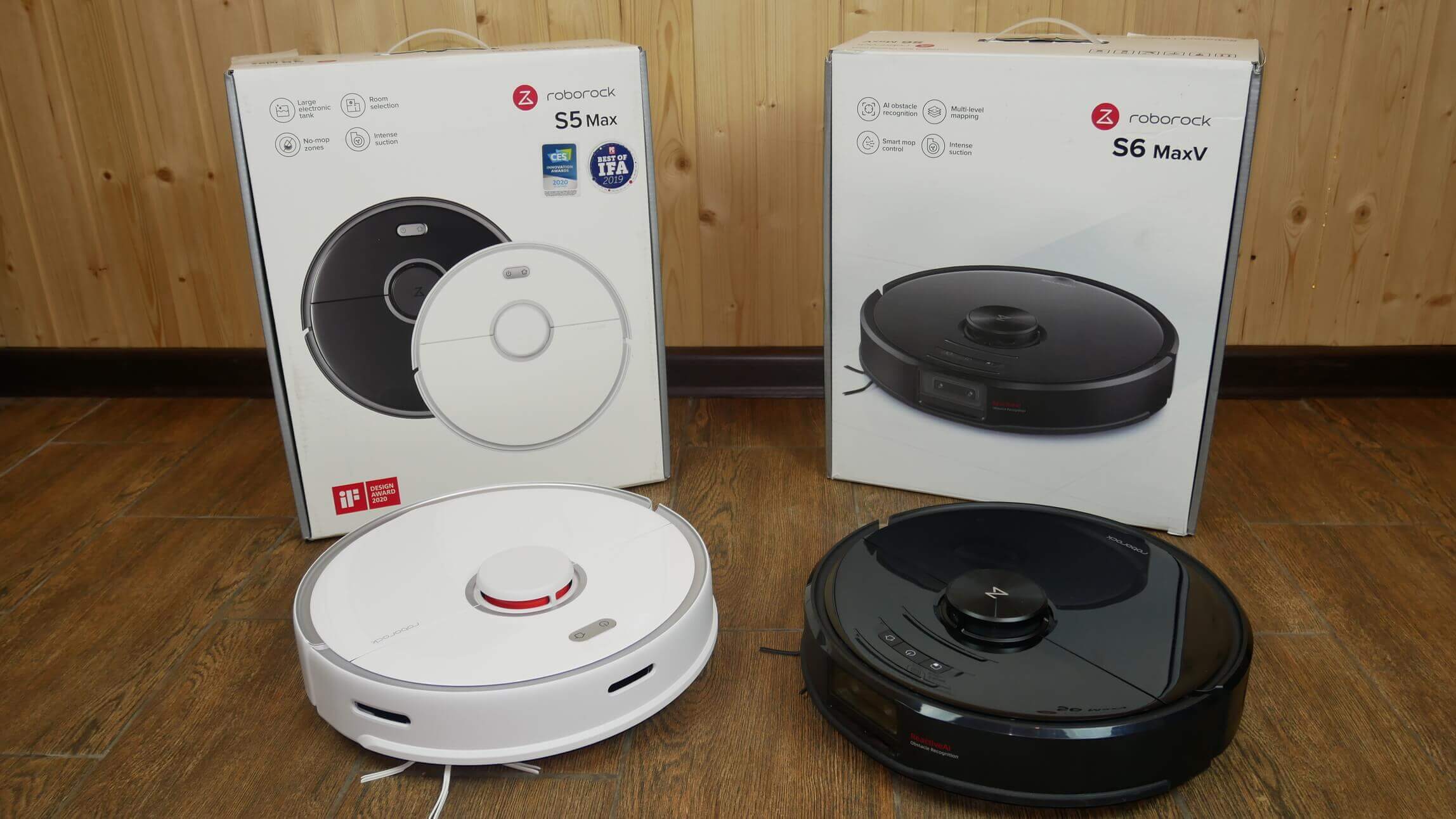 Sveikinimai visiems nuo svetainės redakcijos komandos robovac.washerhouse.comPagaliau priėjome prie dviejų „Roboorock“ flagmanų – robotų dulkių siurblių palyginimo. Tai yra naujas 2020 metų produktas – „Roborock S6 MaxV“ ir jo pirmtakas, išleistas 2019 m. Roborock S5 MaxŠie robotiniai dulkių siurbliai yra labai panašios išvaizdos ir dizaino. Iš pirmo žvilgsnio vienintelis išskirtinis bruožas yra atnaujintame modelyje įmontuota priekinė kamera. Tai pagerino navigaciją ir pridėjo keletą naudingų funkcijų. „S5 Max“ kainuoja maždaug 360 eurų, o „S6 MaxV“ – 550 eurų. Kainas nustatėme remdamiesi „Lamobile“, kuri pateikė robotus mūsų lyginamajam testui, pasiūlymais. Kainų skirtumas daugeliui yra didelis, todėl svarbu nustatyti, ar verta mokėti papildomai, ir kokie dar yra „Roborock S5 Max“ ir „S6 MaxV“ robotų skirtumai, be naujo novatoriško jutiklio. Tai dabar ir aptarsime. Pradėkime!