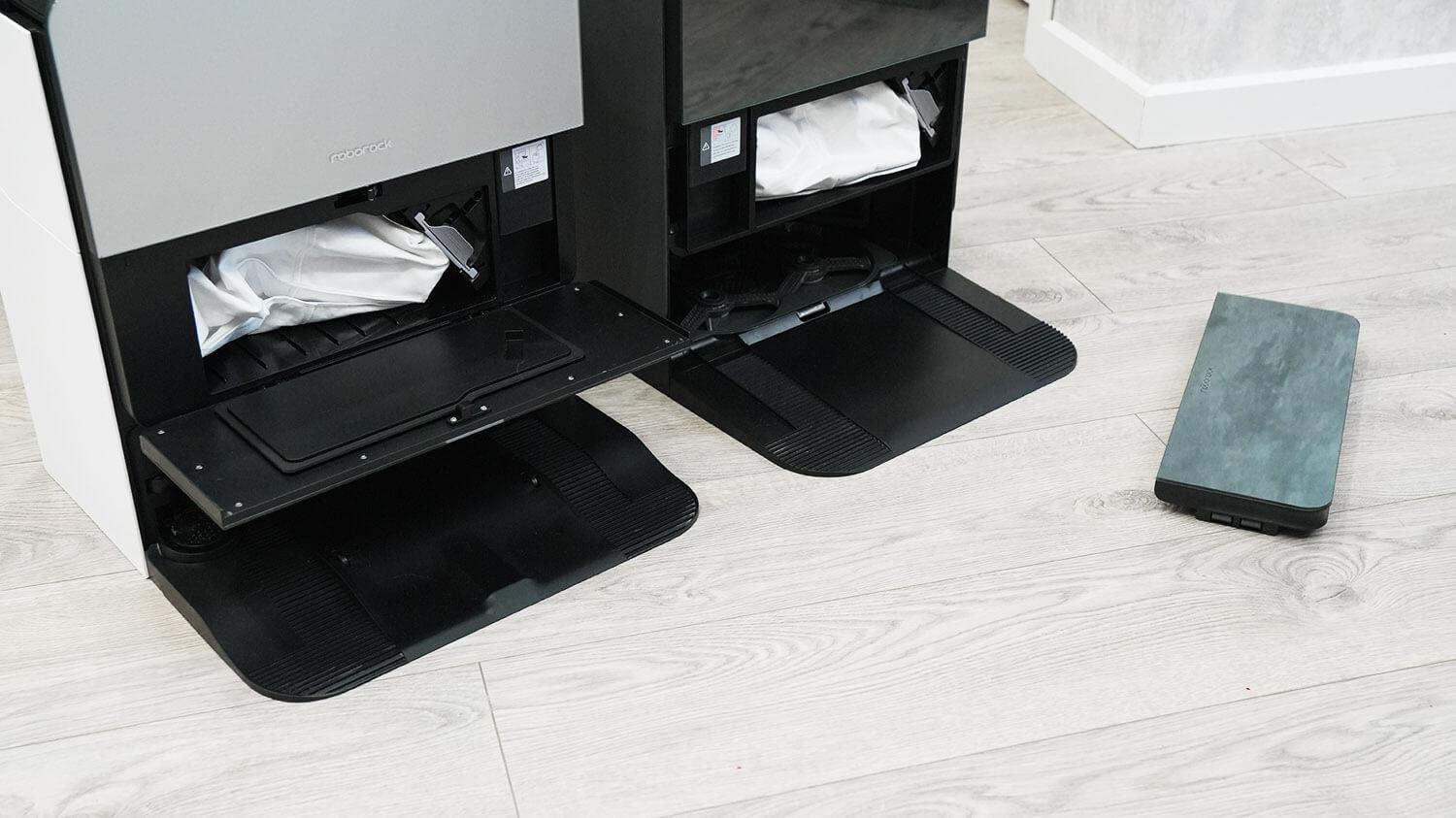 Dulkių surinktuvai paprastai yra po viršutiniu dangčiu. Jų formos skiriasi, kaip ir HEPA filtrai. Tai turės įtakos bandymų rezultatams, kaip parodysiu toliau. „S9 MaxV Ultra“ turi pastebimai didesnį filtrą.