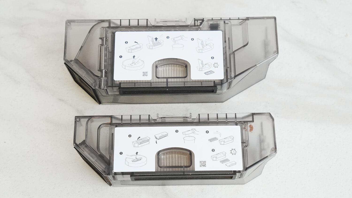 „Roborcok Saros 10R“ dulkių surinktuvas ir HEPA filtras yra pastebimai didesni, nes rankinis „Z70“ dulkių siurblys paaukojo dalį savo dulkių surinktuvo talpos, kad tilptų didesnis dulkių siurblio korpusas.