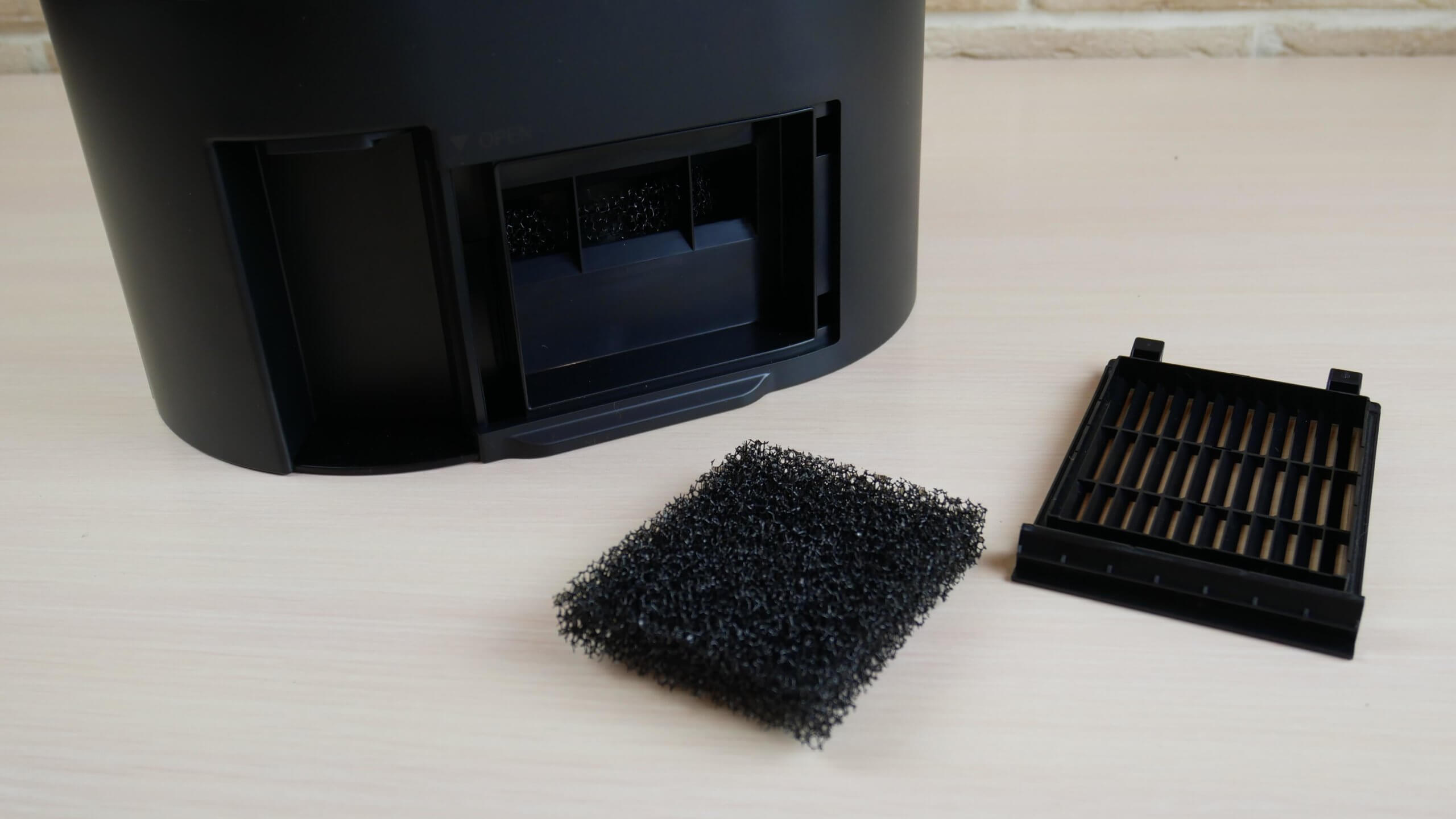 Be to, „Proscenic“ gali pasigirti pūstu putplasčio filtru, kuris paslėptas gale po dangteliu.