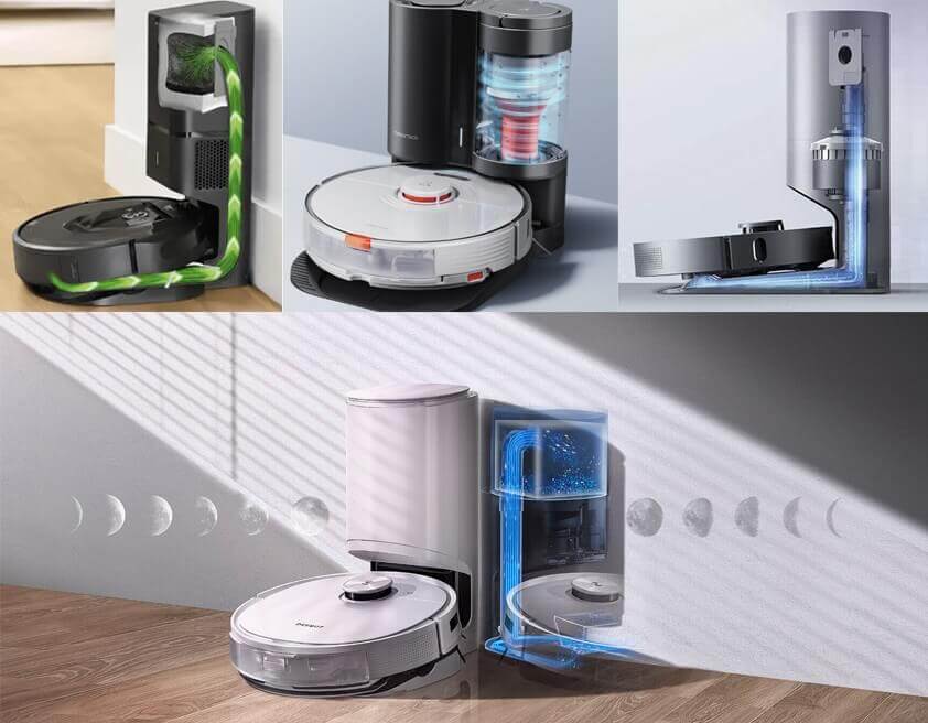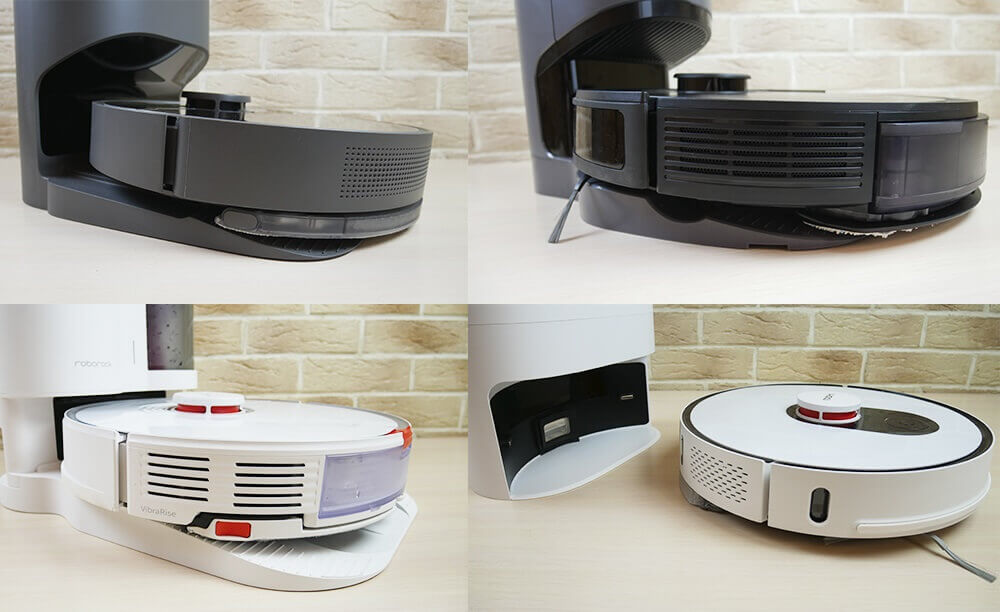 Kalbant apie dulkių surinktuvo ištuštinimą, „iRobot“, „Ecovacs“, „Dreame“ ir „Roborock“ visi ištuština dulkes per apačią. Nors pirmieji trys robotai siurbia per specialią užuolaidą dulkių surinktuve, „Roborock“ turi unikalią sistemą, kuri ištuština dulkes per pagrindinį siurbimo kanalą ir centrinį šepečių mazgą.