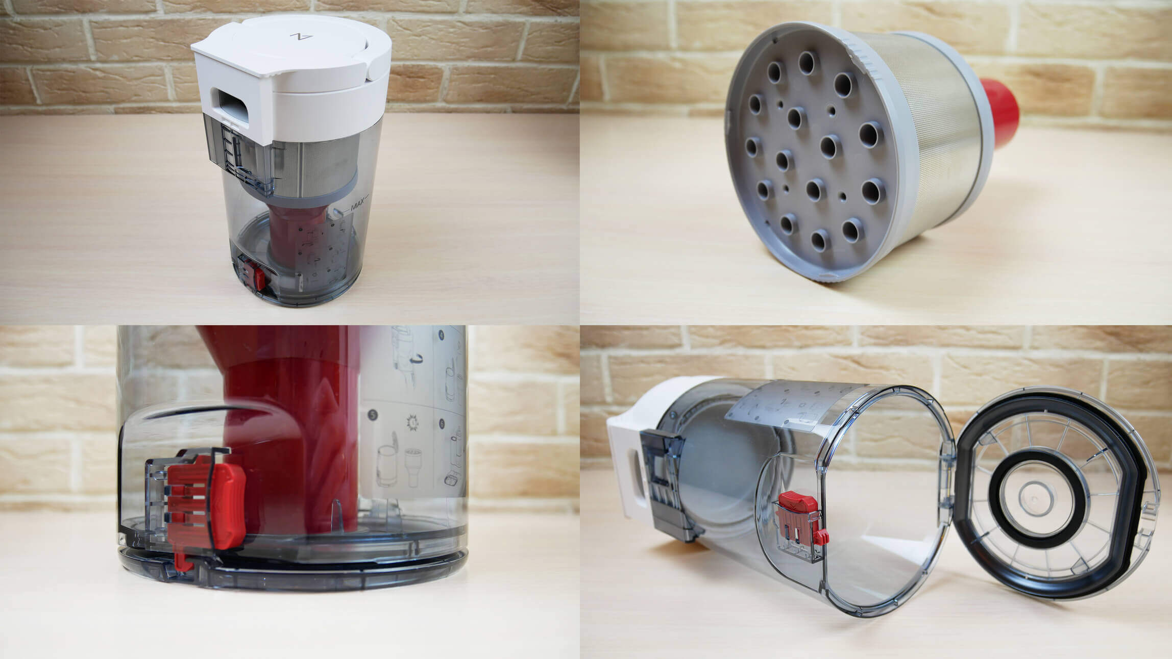 Visų pirma, verta pabrėžti išskirtinį „Roborock“ stoties privalumą: jos dulkių surinkimo konteinerį be maišelio. Naudodami kolbą su įmontuotu ciklonu ir tinklelio filtravimo sistema, galite gerokai sutaupyti eksploatacinių medžiagų. Šią dulkių surinkimo konteinerį lengva nuimti ir prižiūrėti. Jį taip pat galima plauti.