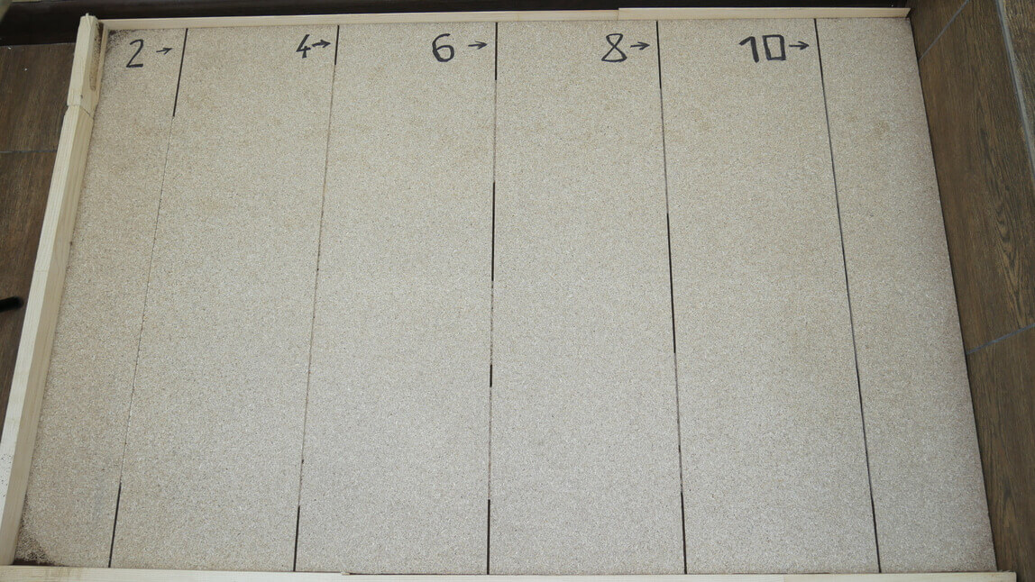 Dabar palyginkime, kokį gylį plyšiuose gali pasiekti robotai dulkių siurbliai. Mūsų bandymų sistemoje išpjovėme nuo 2 iki 10 mm gylio plyšius.