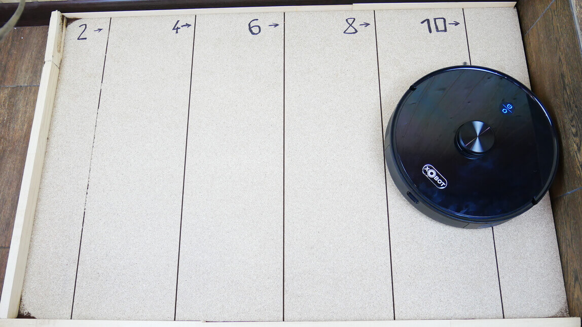 „iRobot“ pasiekė geriausią rezultatą, surinkęs 101 gramą smėlio. „Roborock“ ir „iClebo“ užduotį atliko atitinkamai surinkę 61 ir 62 gramus. Tai nežymus skirtumas. „Xbot“ ir „Okami“ pasirodė blogiausiai, surinkę po 45 gramus smėlio.
