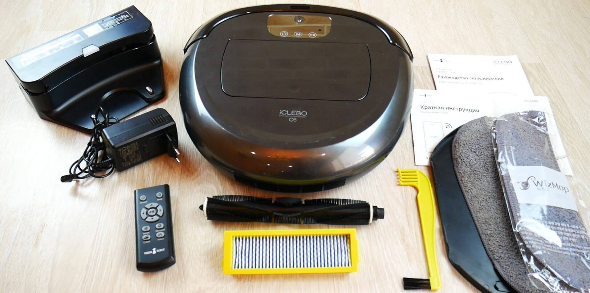 „iClebo“ taip pat turi įkrovimo pagrindą, bet taip pat yra antras atsarginis mikropluošto šluostė, nuotolinio valdymo pultas ir atsarginis HEPA filtras.