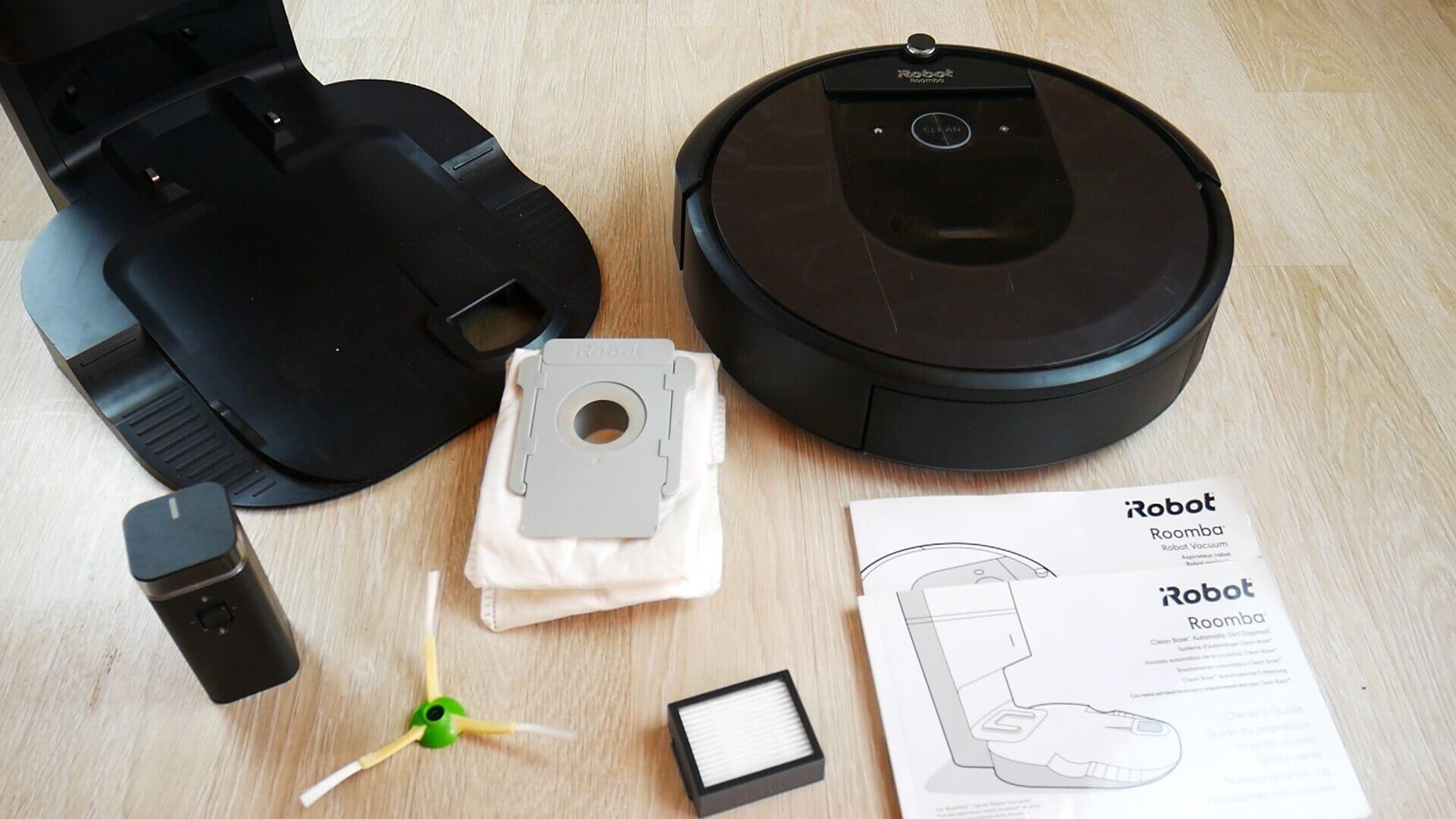 „Roomba i7+“ turi navigacijos kamerą, savaime išsivalantį pagrindą, vieną šoninį šepetį ir unikalų valymo modulį su dviem silikoniniais grandikliais. Kaip ir „Roborock“, apačioje yra šeši apsaugos nuo kritimo jutikliai. Dulkių surinktuvo talpa yra 400 ml, tačiau pagrindas gali talpinti iki 30 kartų daugiau. Šlapio valymo funkcija nepalaikoma. Korpuso aukštis yra 9 cm. Vidutinė kaina su savaime išsivalančiu pagrindu yra 700–750 eurų, o su standartine įkrovimo stotele – 530 eurų.