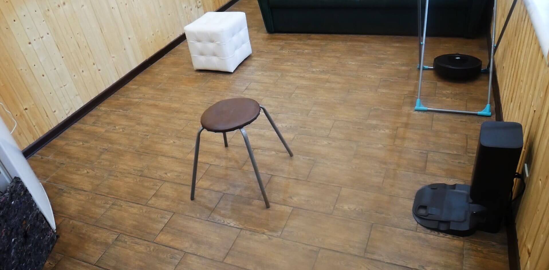 Pereikime prie pagrindinės palyginimo dalies – testų. Pirmiausia palyginsime visų viename kambaryje esančių robotų navigaciją su įvairiomis kliūtimis, su kuriomis dažniausiai susiduriama kasdieniame gyvenime. Tai kėdžių kojos, tamsios zonos robotams su kameromis (sritis už sofos), veidrodžiai robotams su lidaru, drabužių džiovyklės kojos (ant kurių robotai dažnai užstringa) ir tiesiog objektai, esantys roboto kelyje. Mūsų atveju tai yra pufas.