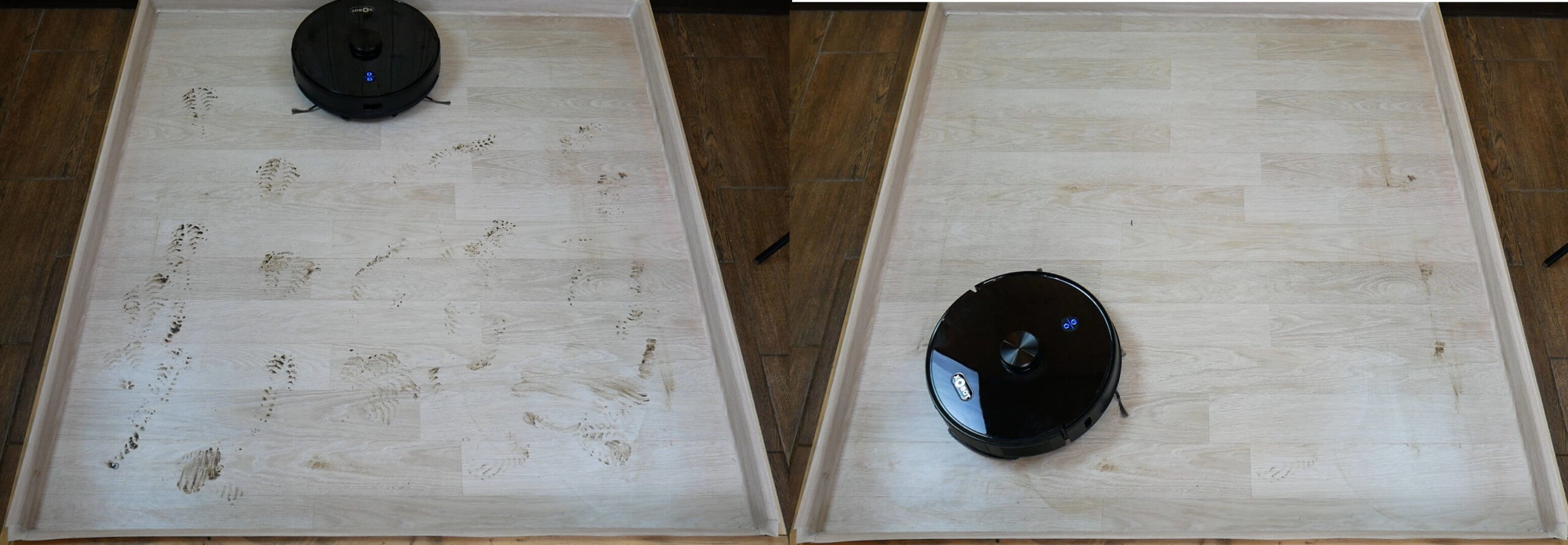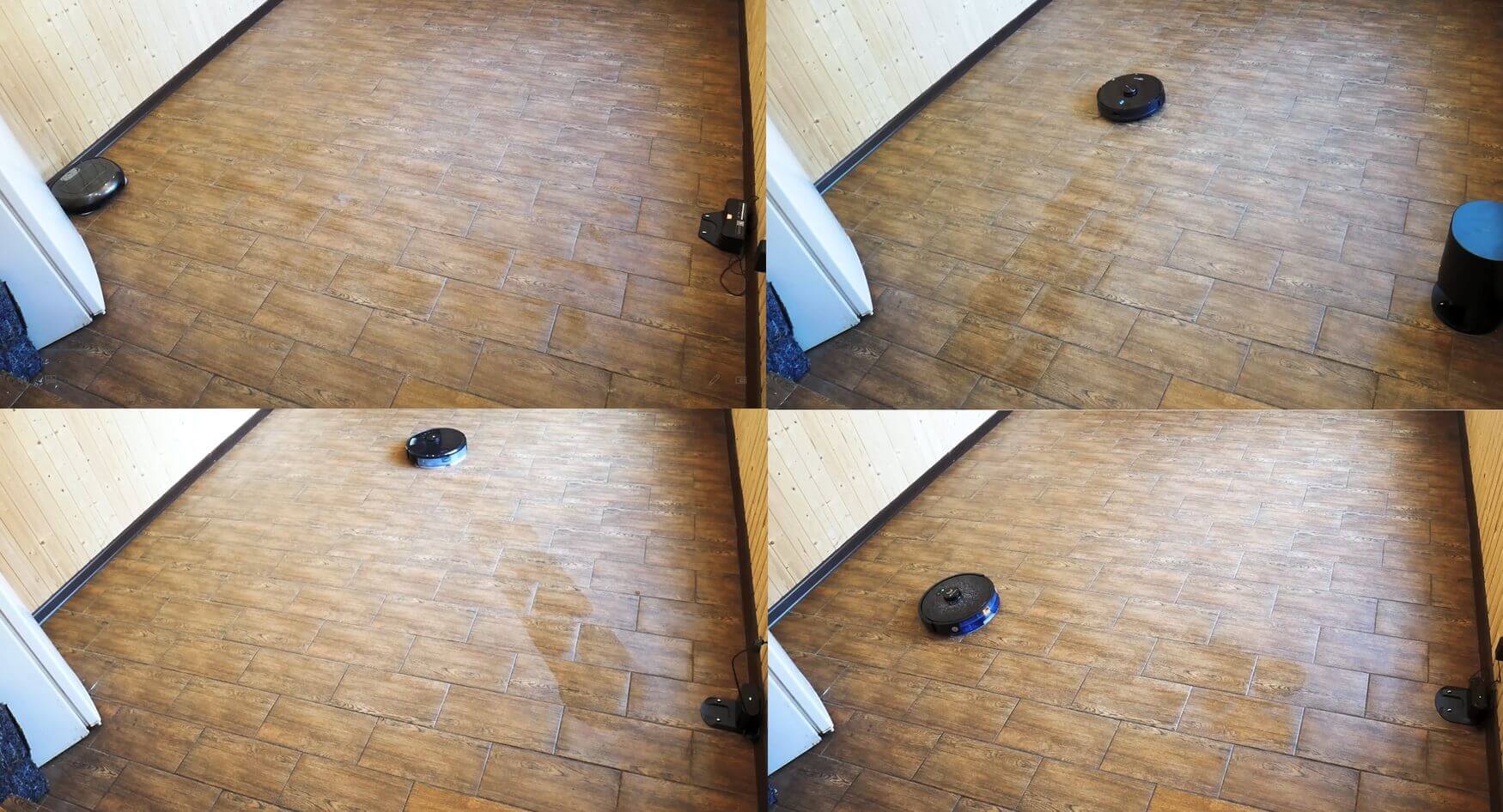 „iClebo“ gali išvalyti iki 15 kvadratinių metrų grindų plotą. „Xbot L7 Pro“ šlapio valymo režimu gali išvalyti iki 40 kvadratinių metrų plotą. „Roborock S6 MaxV“ per visą plotą praėjo aštuonis kartus, kol pritrūko vandens. Tai reiškia, kad jo valomas plotas yra maždaug 100 kvadratinių metrų. „Okami U100 Laser“ per visą plotą praėjo du kartus, o vandens lygis bake praktiškai nepakito. Todėl šis robotas-dulkių siurblys gali šlapiai valyti didesnius nei 100 kvadratinių metrų plotus, kol išsikraus jo baterija.