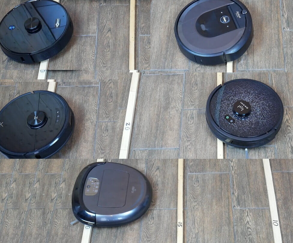 Nustatykime, kokias slenksčius gali peržengti kiekvienas robotas. Gamintojo teigimu, „Roborock“ lengvai įveikia iki 2 cm aukščio slenksčius. „iClebo“ mūsų bandyme taip pat sugebėjo peržengti 20 mm slenkstį, nors ne visada jam tai pavyksta. Net gamintojas teigia, kad slenkstis siekia iki 15 mm. „Okami“ gali peržengti iki 15 mm slenksčius, o „Xbot“ taip pat gali peržengti iki 20 mm slenksčius. „iRobot“ negali įveikti aukštesnių nei 15 mm kliūčių.