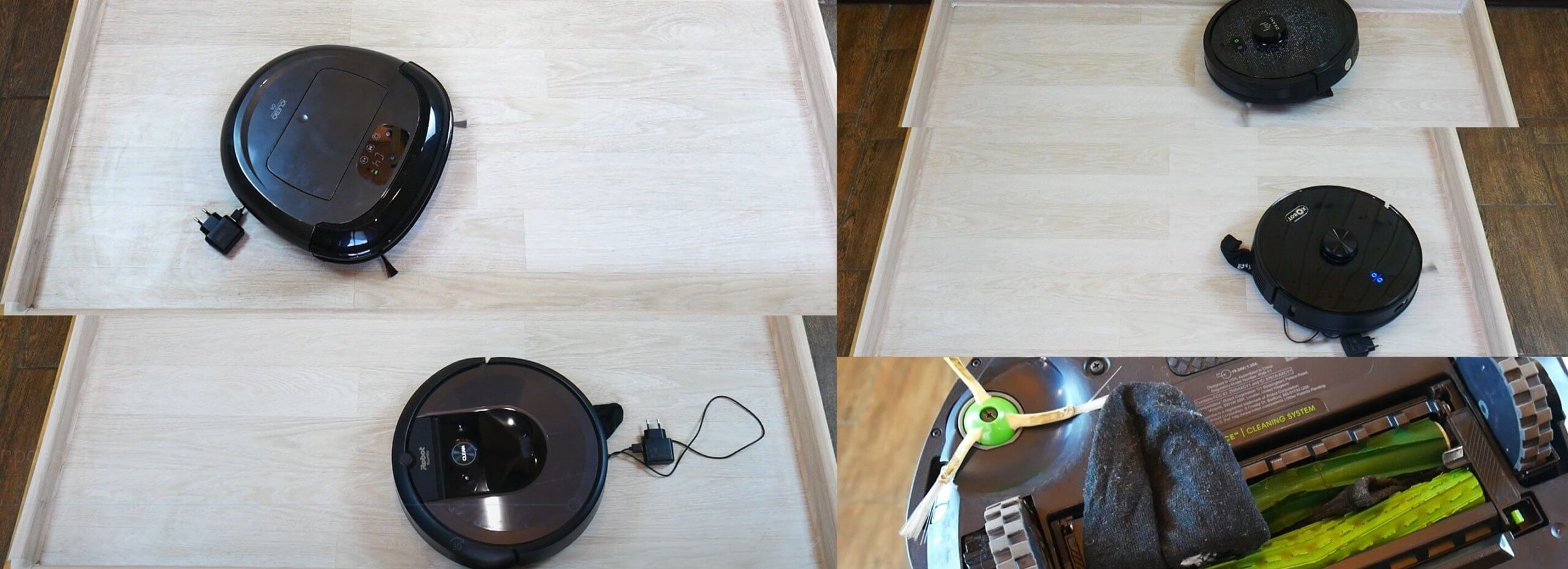 Testas parodė, kad „iClebo“, „iRobot“ ir „Xbot“ neturi problemų su tamsiomis dėmėmis ant grindų. Tačiau „Roborock“ ir „Okami“ jas atpažįsta kaip aukščio pokyčius. Todėl trys geriausi robotai šiame teste gauna aukščiausius balus.