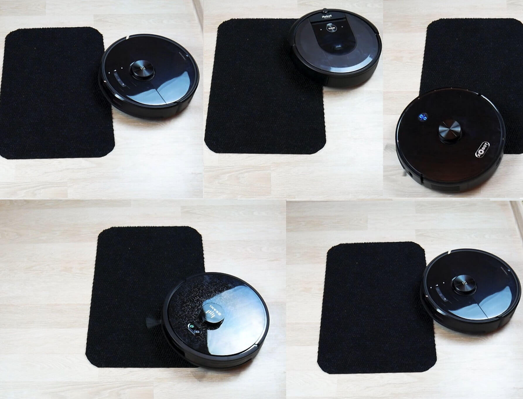Taip pat išbandėme, kaip gerai palyginti robotai pašalino gyvūnų plaukus nuo kilimų. Visi jie pasirodė puikiai, tad rezultatas lygus.