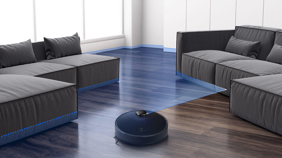 De robotstofzuiger is uitgerust met een verbeterde transmissie en kan zich daardoor gemakkelijk door smalle openingen wurmen en succesvol rond meubels navigeren zonder deze aan te raken.