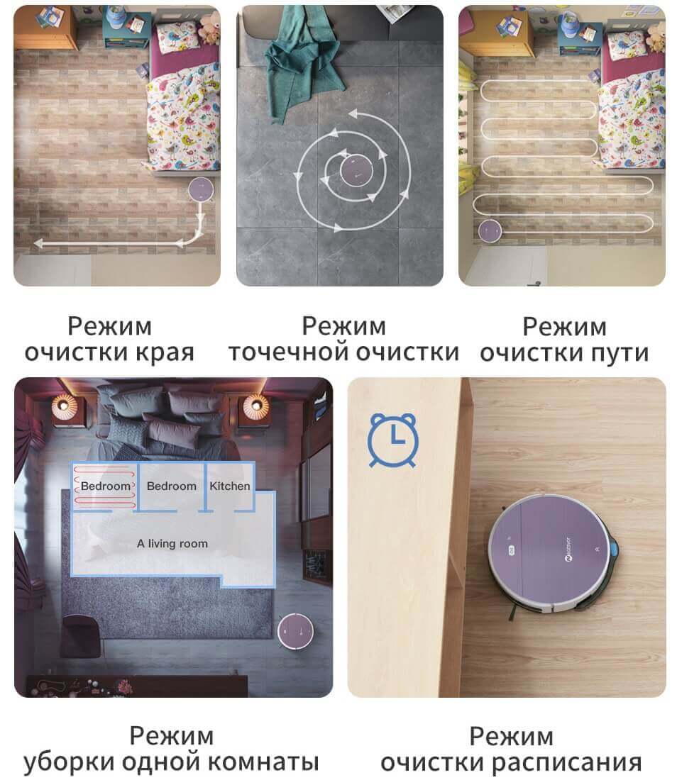 Valget av en bestemt modus vil avhenge av romforholdene (møbler, gulvbelegg, smussnivå). En unik modus er «Rengjøring av enkeltrom», som lar deg systematisk rengjøre ett rom etter det andre. Dette sikrer at robotstøvsugeren ikke går glipp av noen av dem.