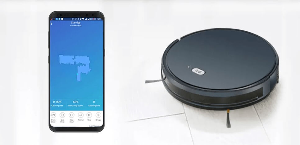 I tillegg til kontroll via knappen på huset og den infrarøde fjernkontrollen, kan du endre innstillinger og driftsmoduser ved hjelp av en mobilapp på smarttelefonen din. Ingen effektiv robotstøvsuger er komplett uten denne moderne funksjonen. Appen lar deg også angi en rengjøringsplan, noe som er veldig praktisk for de som liker å planlegge fremover og har svært lite tid å bruke på å holde hjemmet rent.