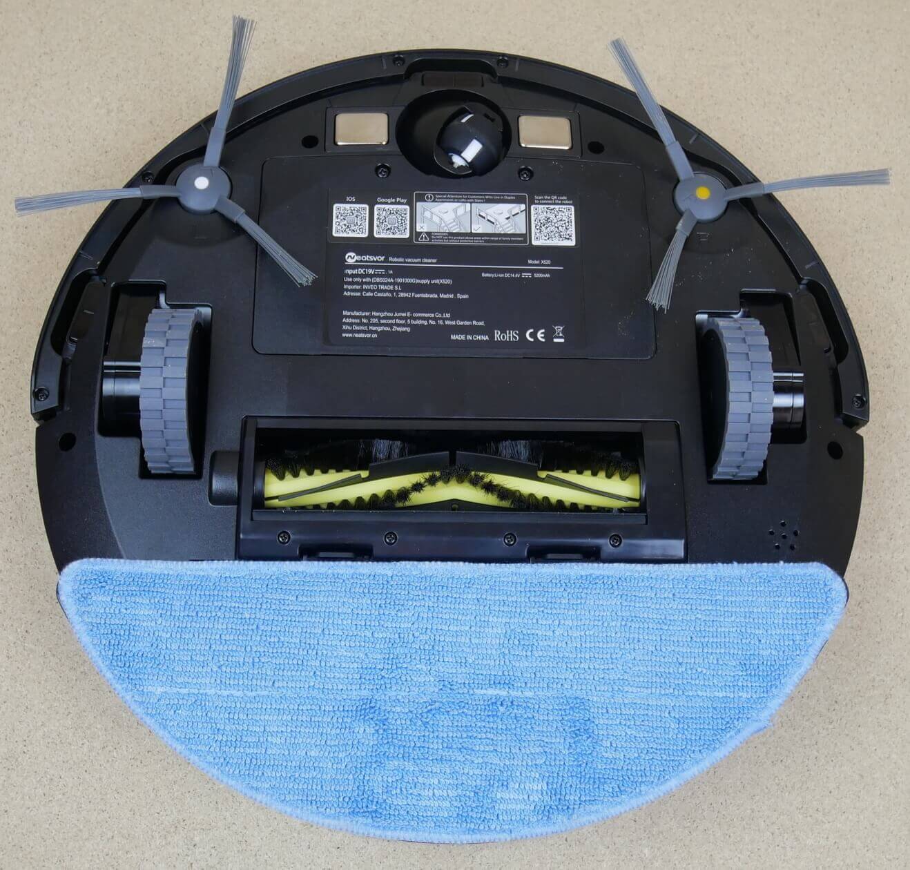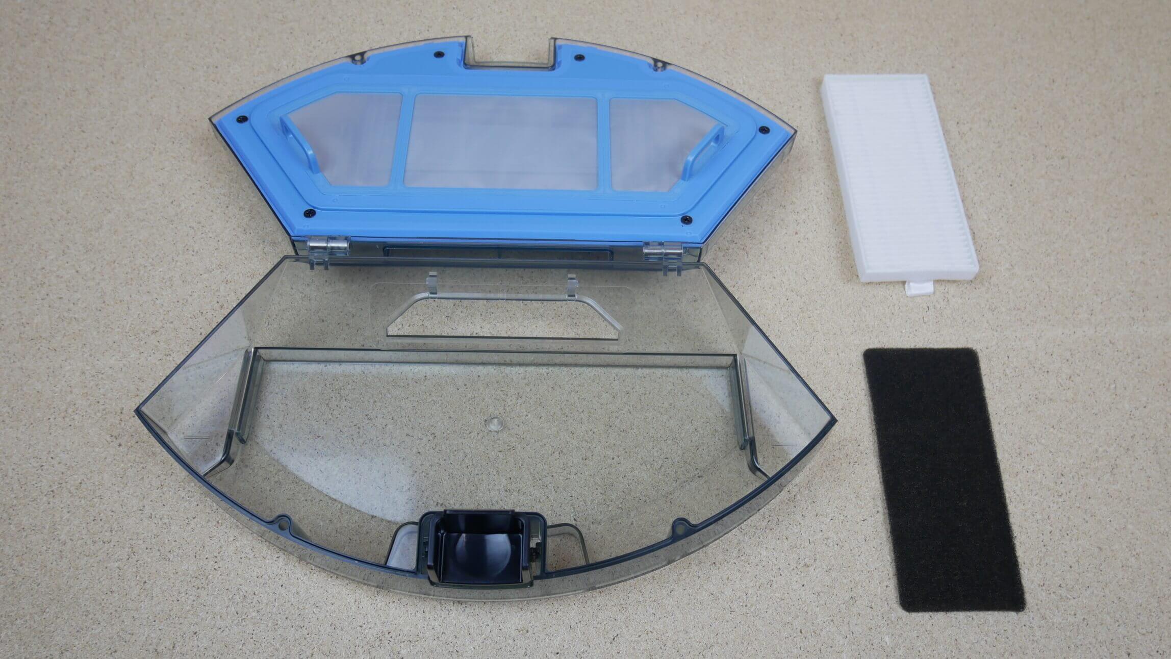 En vanntank på 350 ml kan installeres i stedet for støvsamleren. En pumpe for elektronisk styring av vannstrømmen er synlig på toppen. Det finnes et separat avfallsoppsamlingsrom. Det er viktig å merke seg at Neatsvor X520 ikke støvsuger i våtrengjøringsmodus, men den kan feie.