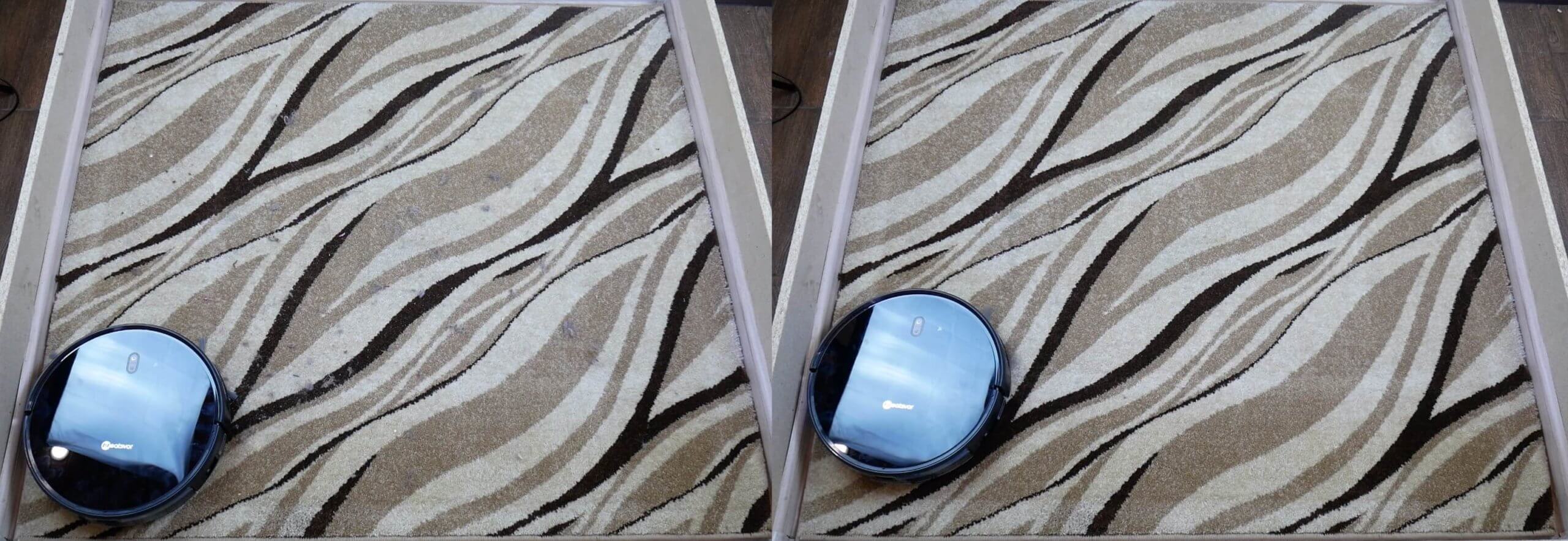 Det er heller ingen klager på rengjøring av tepper; robotstøvsugeren gjorde en god jobb med å effektivt plukke opp pels, hår og smått rusk fra teppet.