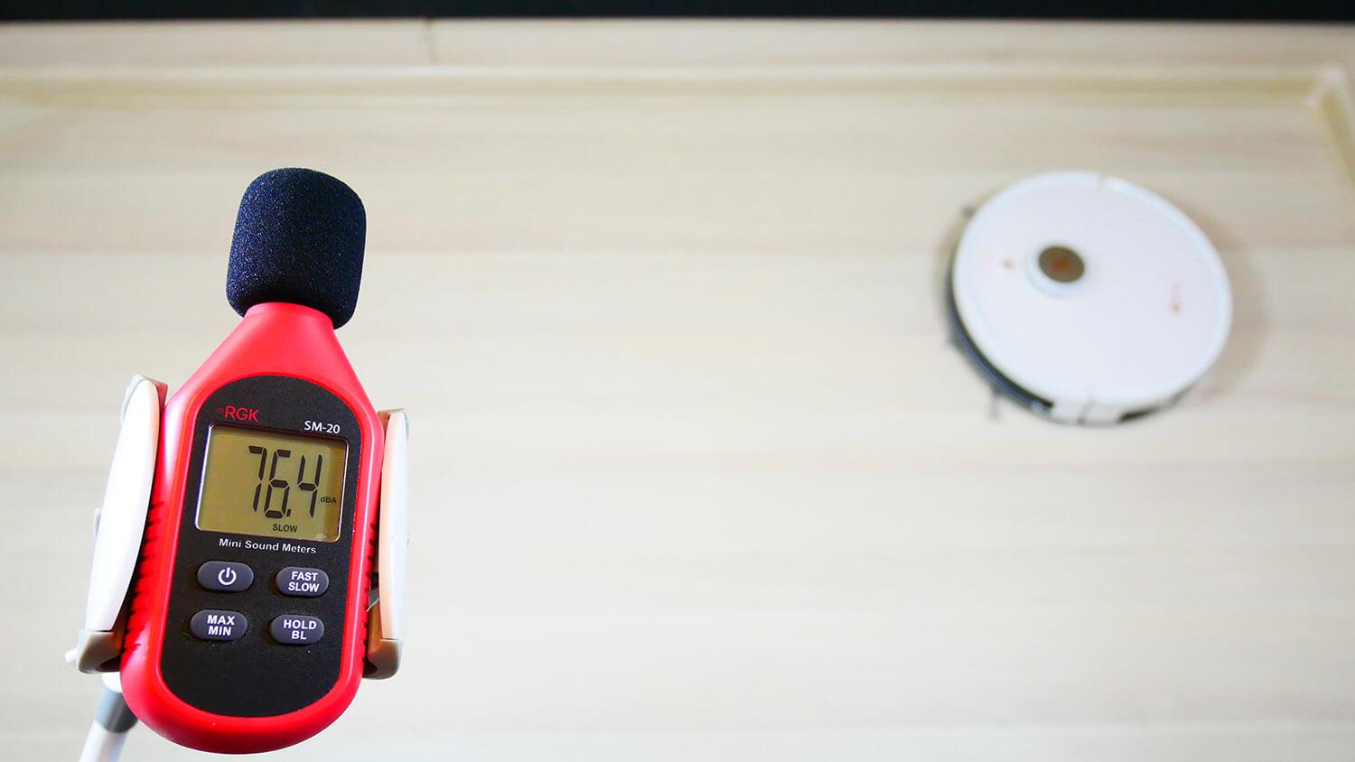 Når det gjelder støynivået, varierer det fra 64 til 77 dB, avhengig av valgt modus. Støynivået til denne roboten er veldig høyt ved maksimal effekt. I andre moduser er den på nivå med lignende roboter.