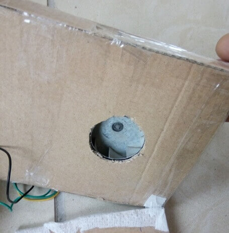 On retire les pales du ventilateur d'origine et on fixe une turbine d'aspirateur sur son rotor. Il est important de bien centrer la turbine, sinon cela risque de créer des déséquilibres et des vibrations.