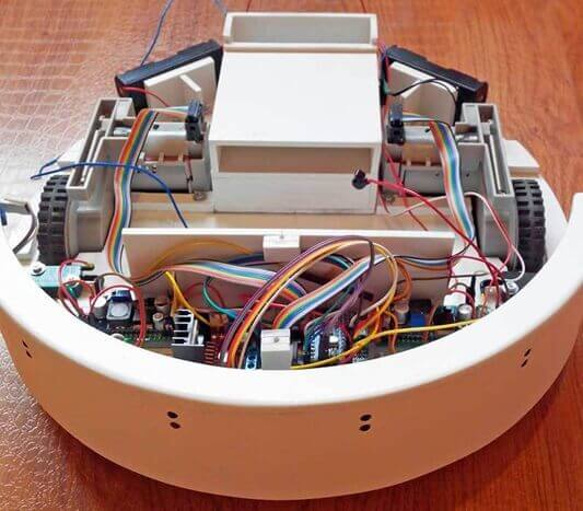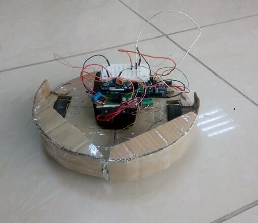 Voilà, c'est tout ! Un guide étape par étape pour assembler un aspirateur robot à partir de matériaux de récupération. Son fonctionnement est le suivant : l'aspirateur robot avance jusqu'à rencontrer un obstacle. Après la collision (ou l'approche, si vous utilisez des capteurs à ultrasons), il s'arrête, recule d'une distance prédéterminée, tourne selon un angle aléatoire, puis reprend sa route.