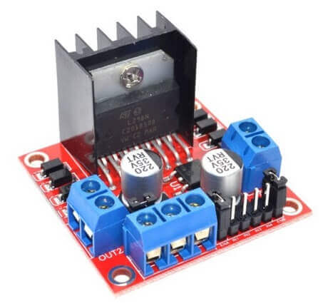 Pour contrôler les moteurs du robot, il est pratique d'utiliser un module basé sur la puce L298. Il s'agit d'un circuit en pont en H ; vous pouvez le construire vous-même à partir de composants individuels, mais l'achat d'une carte prête à l'emploi est plus fiable. Ce module vous permet de régler la vitesse de l'aspirateur robot et de changer sa direction.