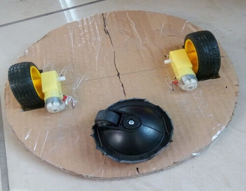 Nous vous présentons un projet d'aspirateur robot simplifié. Voici à quoi il ressemble une fois assemblé :