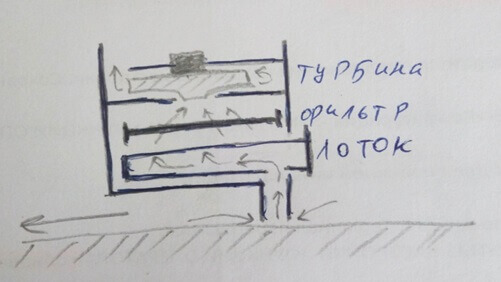 Le plus difficile est de concevoir et d'assembler l'aspirateur. Voici un schéma sommaire :