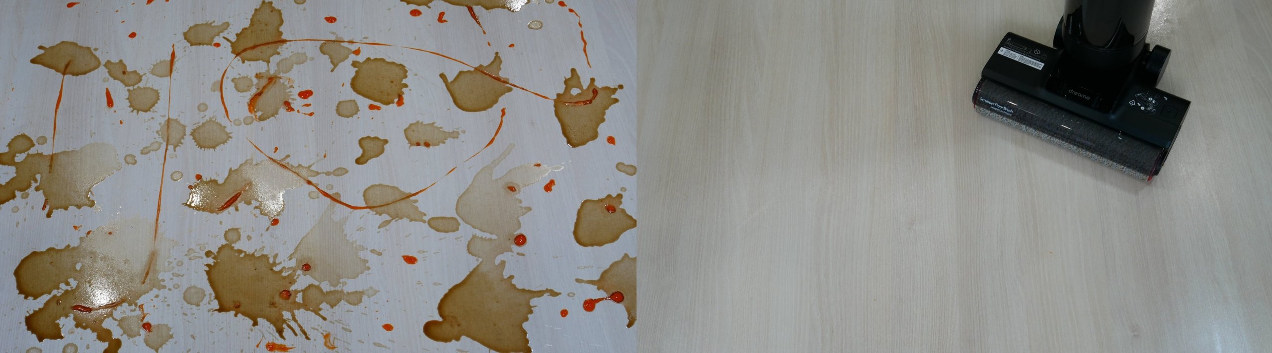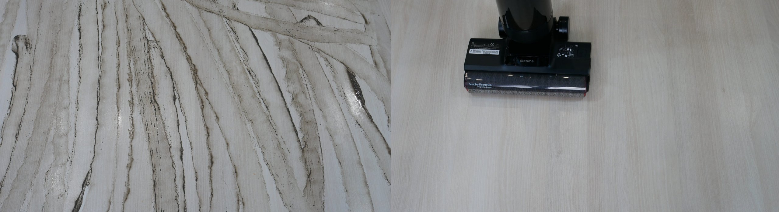 Dreame H12 Pro se lahko uporablja tudi za čiščenje rahlo zasušene umazanije s tal. Kot lahko vidite, ni nobenih sledi ali lis. Tla so popolnoma čista.