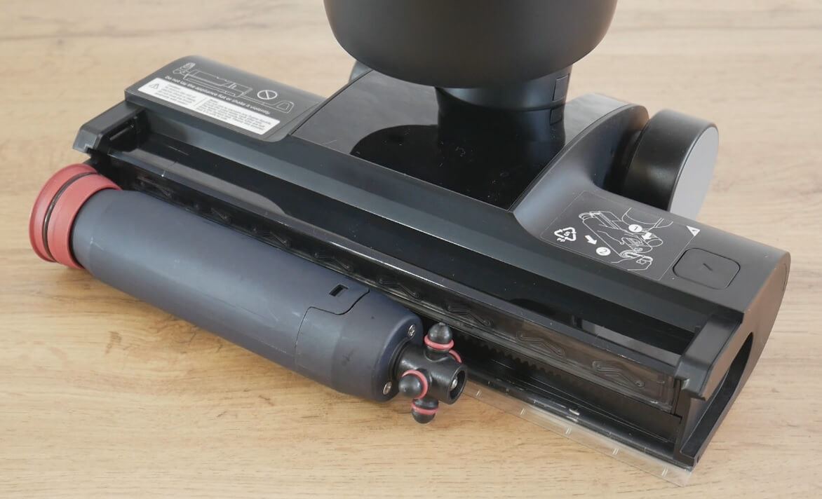 Zgornji pokrov je odstranljiv, zaklep valja pa se sprosti s pritiskom na gumb na vrhu. Ko valj odstranimo, vidimo edinstveno držalo, ki ga dejansko vrti. Ni odstranljivo. Za tem držalom je strgalo za zbiranje preostale vode, sesalna odprtina in glavnik za česanje valja. Dostop do sesalne odprtine je omejen, zato obstajajo dvomi o tem, kako enostavno bo čiščenje in kako učinkovita bo funkcija samočiščenja. To bomo preizkusili.
