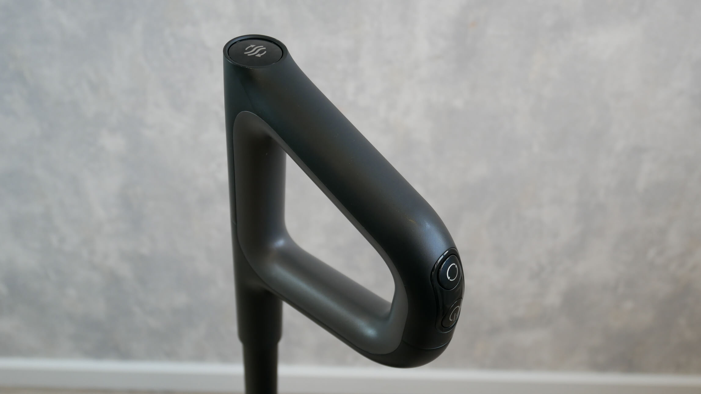 Na ročaju so gumbi za vklop/izklop, izbiro načina in samočiščenje na podstavku. Na hrbtni strani sesalnika je še en gumb za nastavitev jezika glasovnih obvestil. Dreame H12 Pro govori tudi rusko.