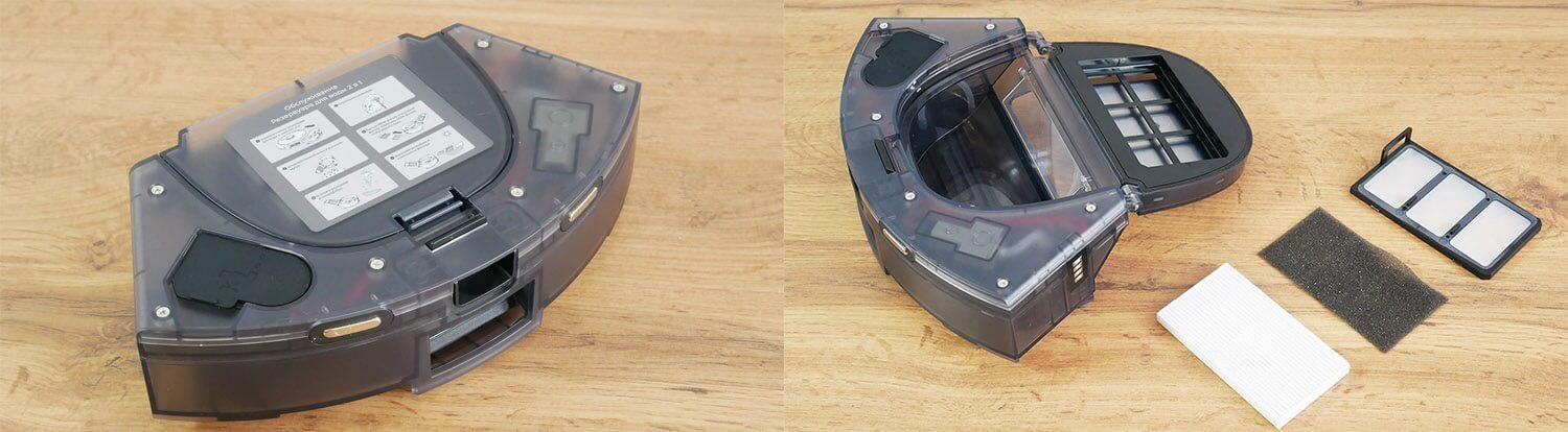 Nadzorna plošča ima dva mehanska gumba. Za navigacijo je odgovoren lidar senzor, ki ima vzmetni pokrov, ki preprečuje, da bi se zataknil pod pohištvom. Na zadnji strani se nahaja kombinirana posoda za vodo in prah. Posoda za prah ima prostornino 300 ml. V notranjosti je trojni filtracijski sistem, ki ga sestavljajo mrežasti, penasti in HEPA filter.