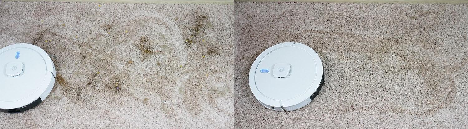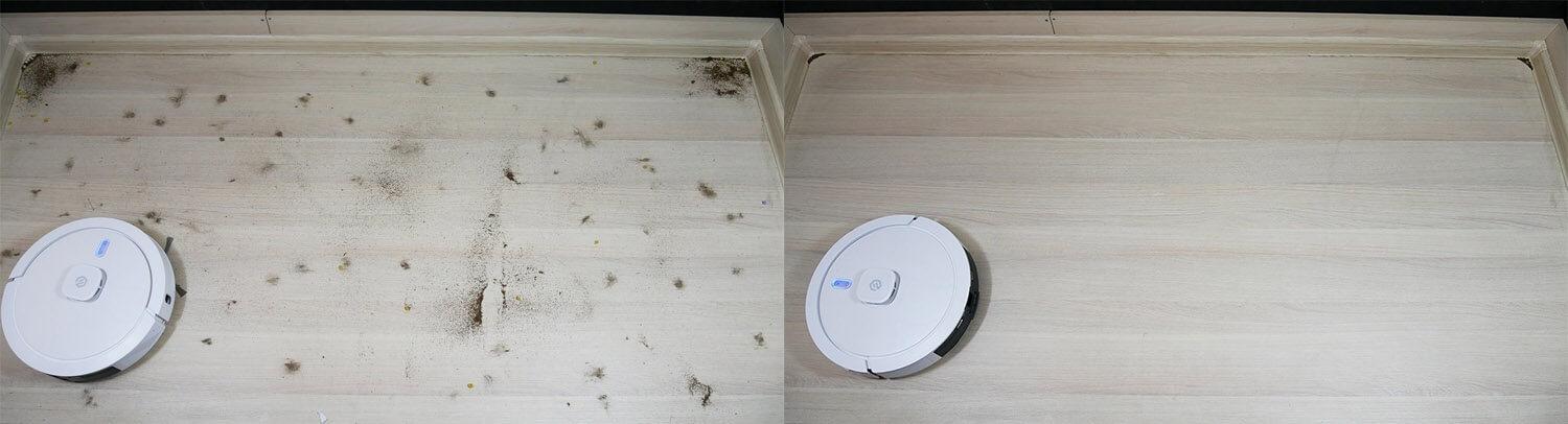 Učinkovitost pobiranja različnih vrst odpadkov na laminatnih tleh je dobra. Le malo odpadkov ostane v kotih, kjer okrogli robotski sesalniki ne morejo pomesti. Na turbo krtačo se je ujelo nekaj las in dlake, večina odpadkov pa se je zbrala v posodi za prah. Test je bil opravljen!