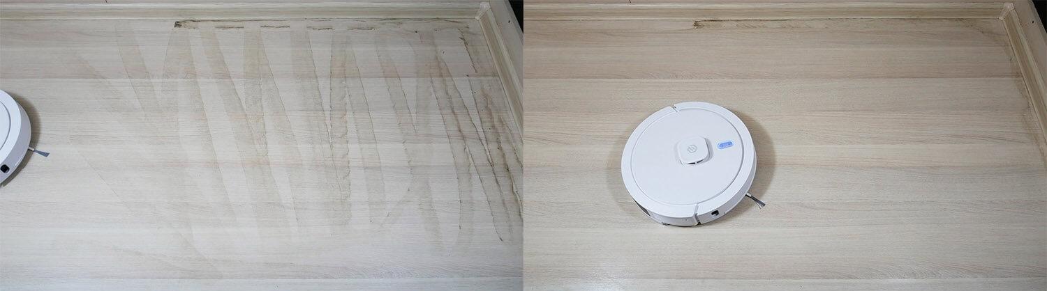 Tudi čistilna zmogljivost je odlična. Krpa se trdno pritisne na tla in vpije umazanijo. Ostane le ozek, neoprani del vzdolž podnožja, kar je šibka točka skoraj vseh robotskih sesalnikov, ki smo jih pregledali.