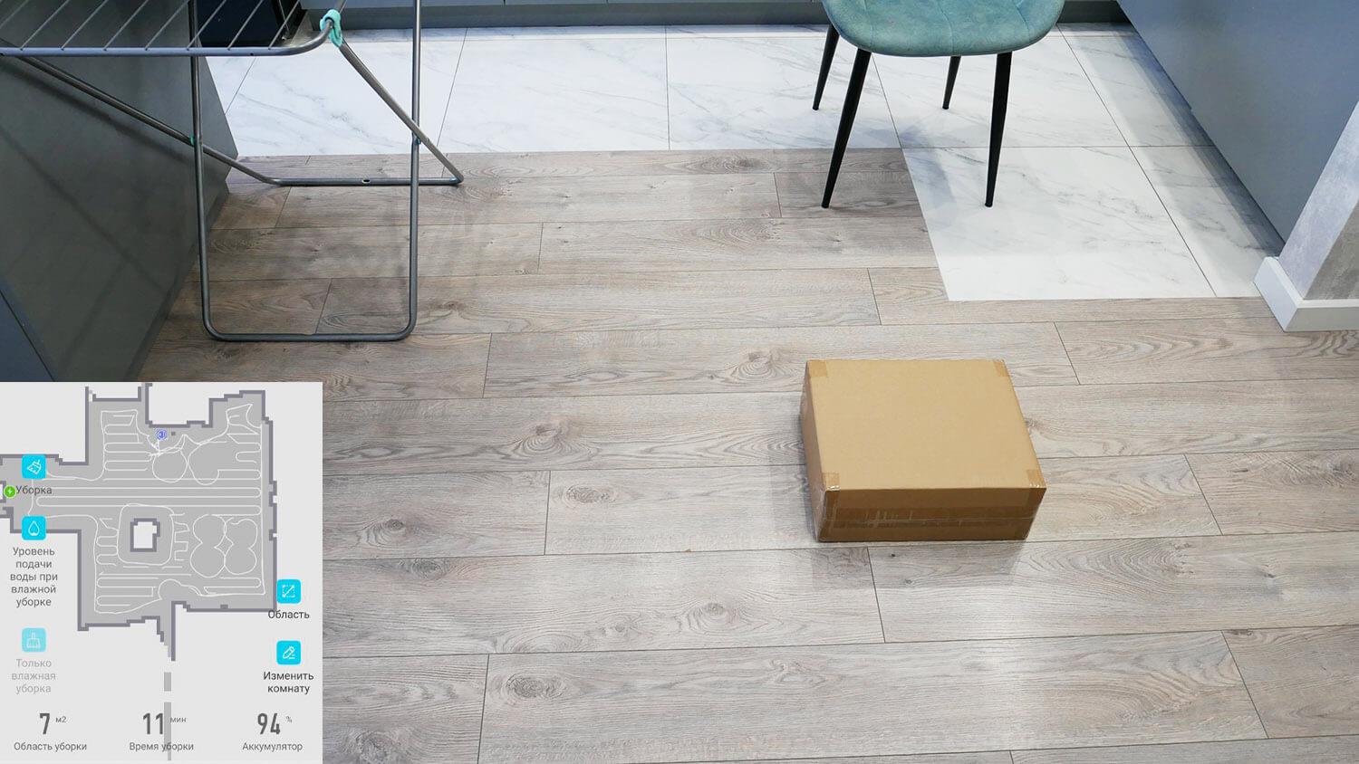 In končno, preidimo k testom. Najprej bomo preizkusili navigacijo EVOLUTION AIRO v prostoru z ovirami. Ko robotski sesalnik vstopi v prostor, najprej obkroži obod, nato pa v vijugastem vzorcu očisti celotno dostopno območje. Noge sušilnega stroja niso predstavljale težav. Robot se je obkrožil tudi vse štiri noge stola in škatle, preden se je vrnil na svoje mesto. Test uspešen!