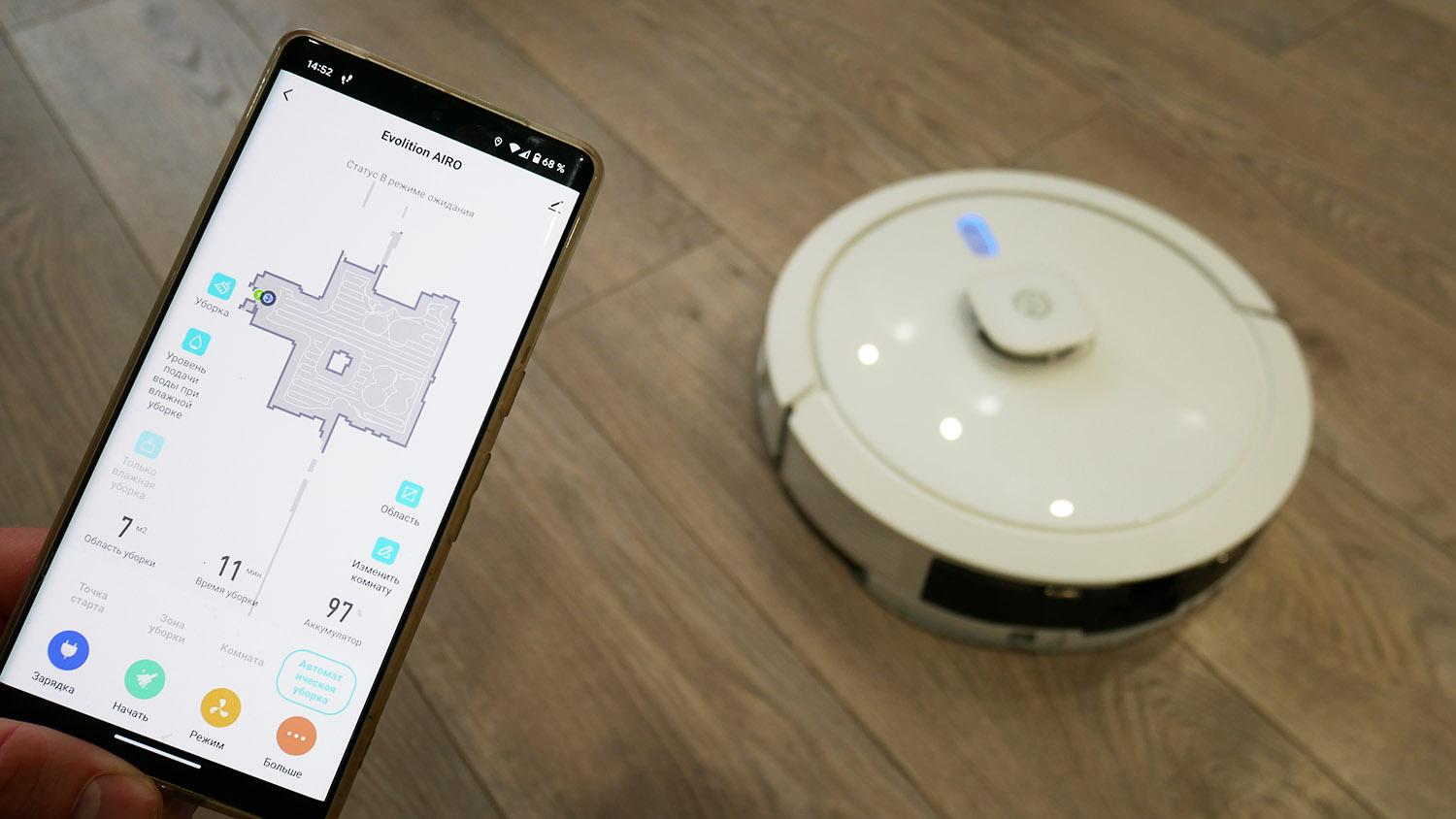 Ko govorimo o zmogljivostih robotskega sesalnika EVOLUTION AIRO, je upravljanje robotskega sesalnika mogoče prek aplikacije Smart Life. Povezava je preprosta in priročna, sledite navodilom proizvajalca. Vmesnik je v ruščini in vse je intuitivno.