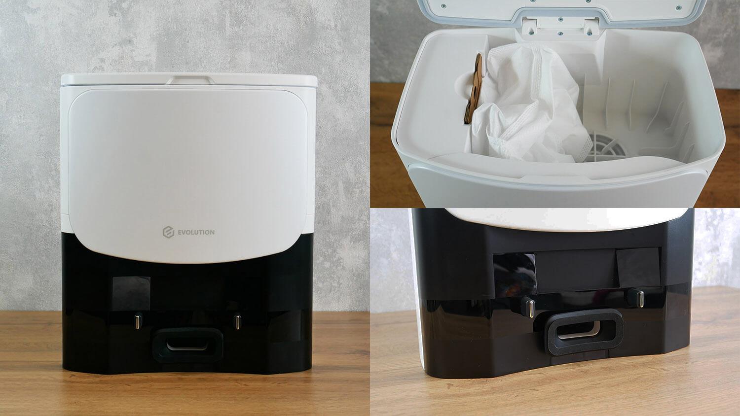 Postaja sama je standardna. Na spodnji strani so polnilna priključka in samočistilna priklopna vrata. Pod zgornjim pokrovom se nahaja vrečka za prah, v katero se prazni posoda za prah robota.