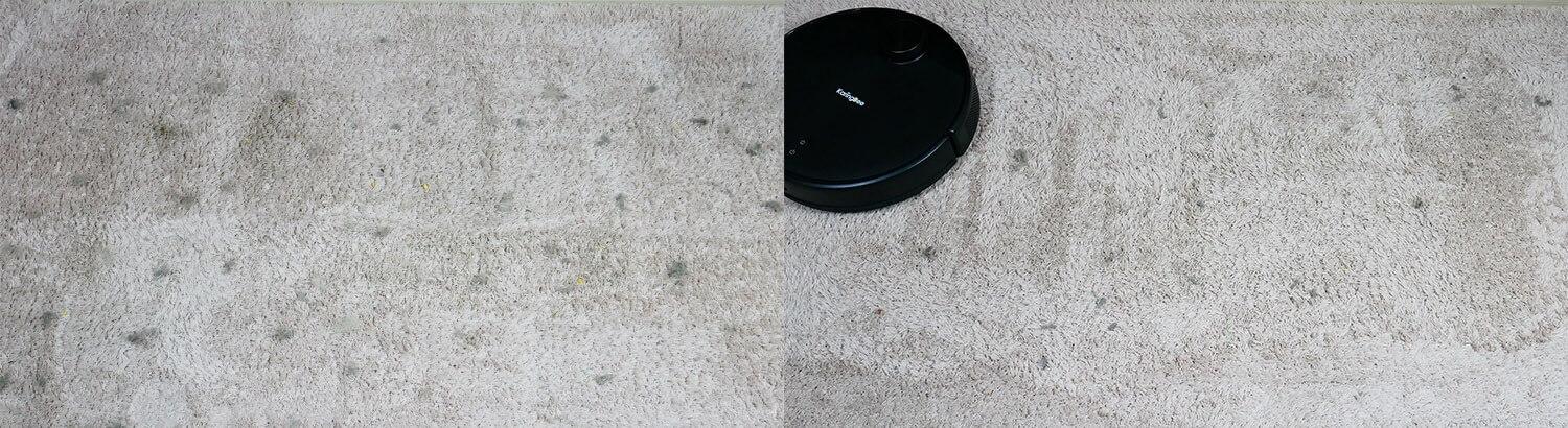 Ta model pa ima nekaj težav s čiščenjem preprog. Ne more očistiti preprog s srednje debelimi vlakni. Po mojem mnenju je to posledica precej omejene sesalne moči in dejstva, da centralna krtača ne plava. Zato čiščenje preprog s KaringBee S7 OMNI ni najboljša ideja.