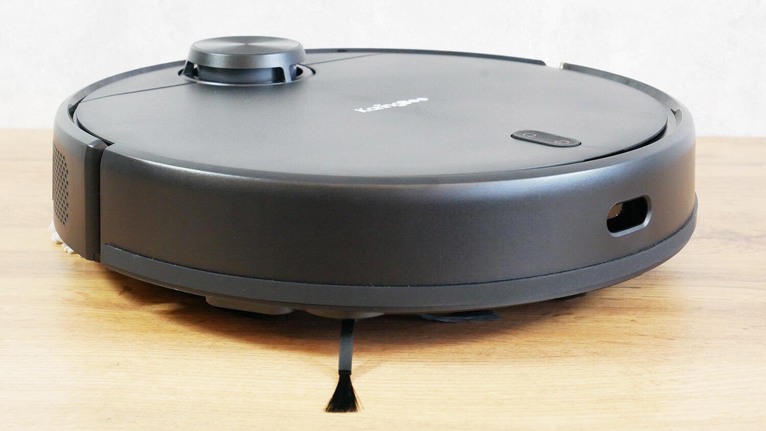 Zdaj pa si poglejmo zasnovo KaringBee S7 OMNI. Začnimo s samim robotskim sesalnikom. Je okrogel, mat plastika pa je odporna na umazanijo. To je plus. Ta model nima stenskega senzorja.