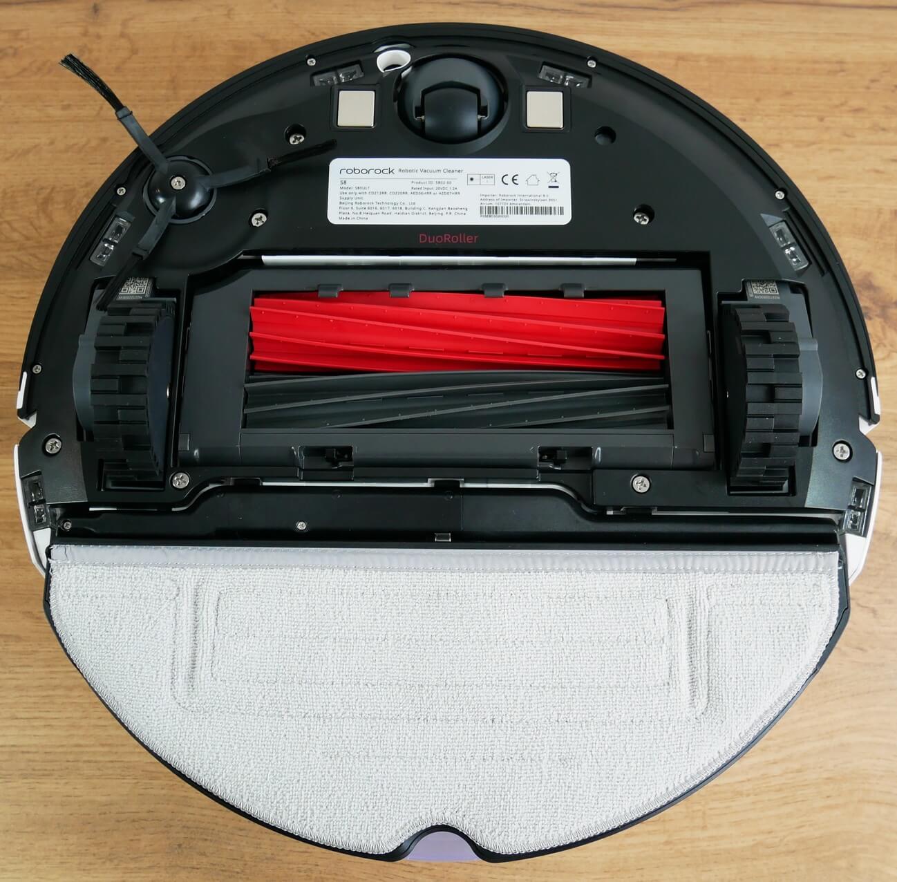 Robot ima na spodnji strani nameščenih šest senzorjev za zaščito pred padcem. Senzor za zaznavanje preprog se nahaja poleg vrtljivega valja. Ima eno samo stransko krtačo: trikrako enoto, pritrjeno z vijakom. Osrednja enota krtače je plavajoča, kar je plus. Ideja o dveh turbo krtačah ni nova. Pravzaprav jo je iRobot patentiral in to znanje uspešno uporablja še danes. Ni jasno, kako je Roborock zaobšel patent, vendar so tehnologijo celo poimenovali DuoRoller. Obe krtači je mogoče odstraniti z obeh strani, da odstranite zapletene lase in dlako. Zelo priročno.