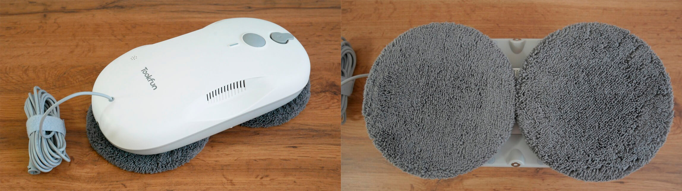 Naprava je opremljena z dvema okroglima diskoma z robčki in se upravlja z daljinskim upravljalnikom. Ne prši vode, vendar ima ta robot vrhunsko podporo proizvajalca in polno garancijo na kraju samem. Barva pa bo morda všeč mnogim, še posebej, če robota kupujete kot darilo za dekle.